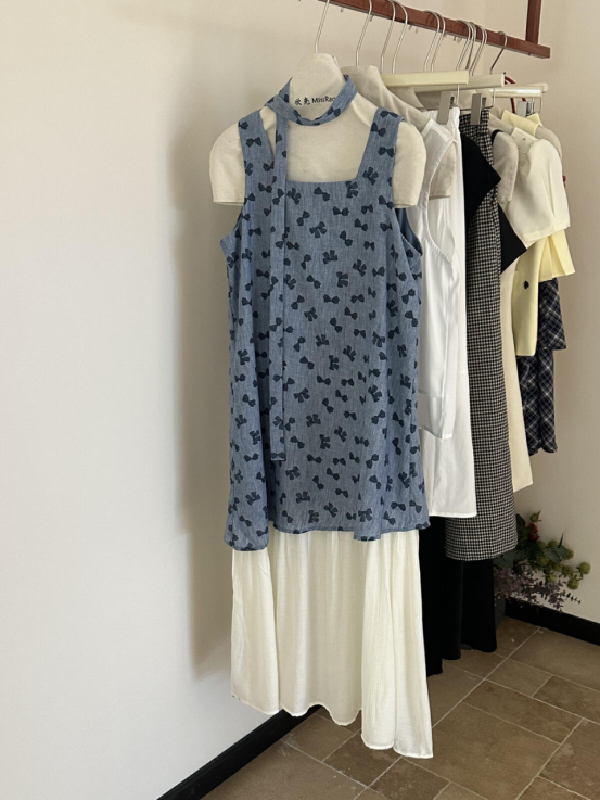 【夏日蝴蝶】蓝色蝴蝶背心款拼接网纱连衣裙 背心款+网纱拼接 背心设计:露肩剪裁凸显肩颈线条,清凉透气,适合高温天气,同时利落显瘦。 网纱拼接:采用今夏爆火的“松弛感大网格”元素,轻盈透肤不闷热,层叠网纱营造朦胧立体感,行走间飘逸灵动。 蓝色系+蝴蝶主题 静谧蓝色调:低饱和蓝自带清凉视觉,契合夏日氛围,且不挑肤色,显白提气色。 蝴蝶元素点睛:蝴蝶图案或镂空设计呼应2025年“蝴蝶美学”回潮,象征蜕变与浪漫,提升单品艺术感。
