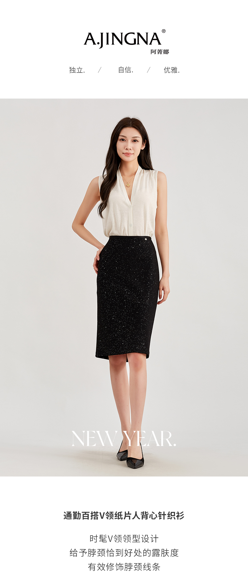 【时髦V领】阿菁娜通勤百搭V领纸片人背心针织衫F30C301003