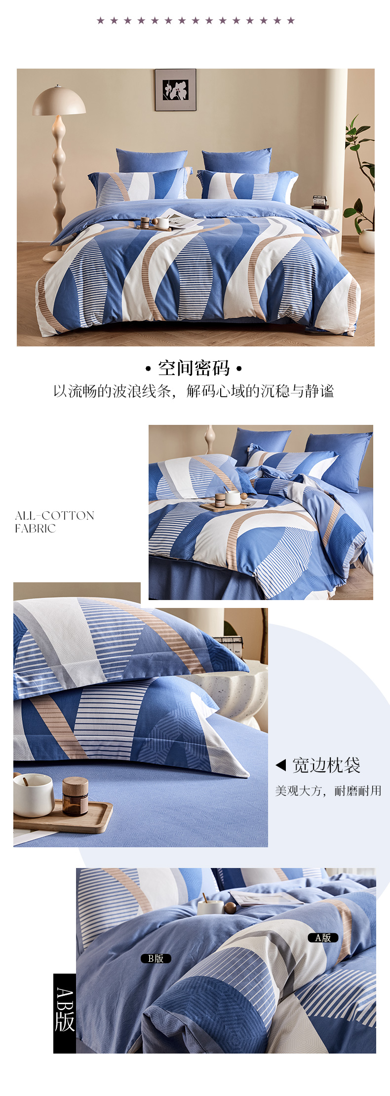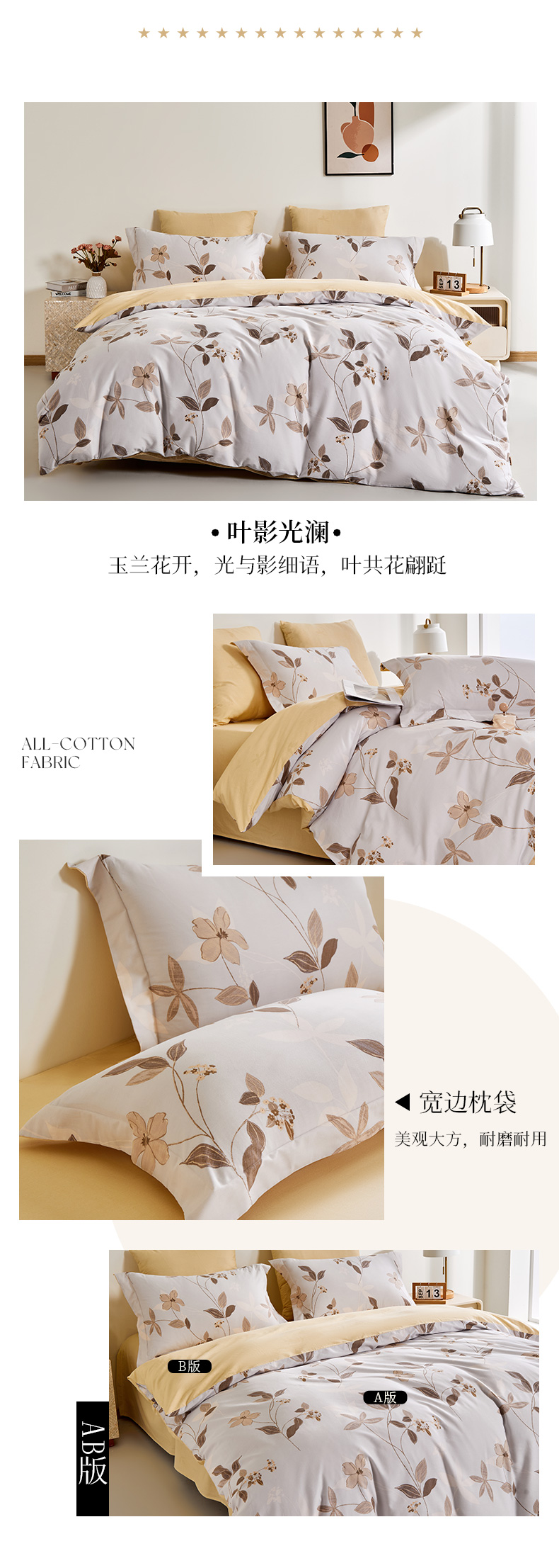多喜爱 全棉贡缎磨绒四件套 凝彩/叶影光澜/空间密码【7A抗菌】yc0108035