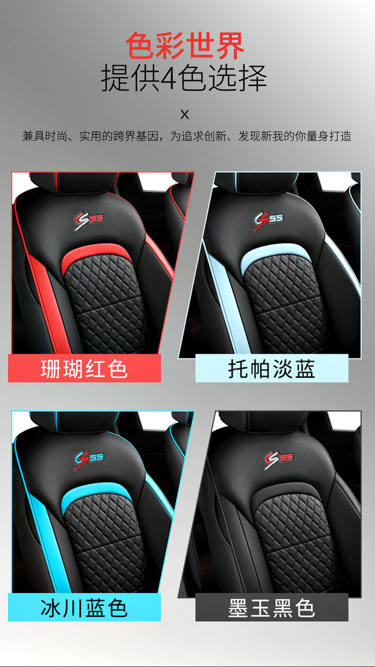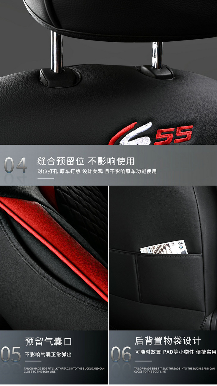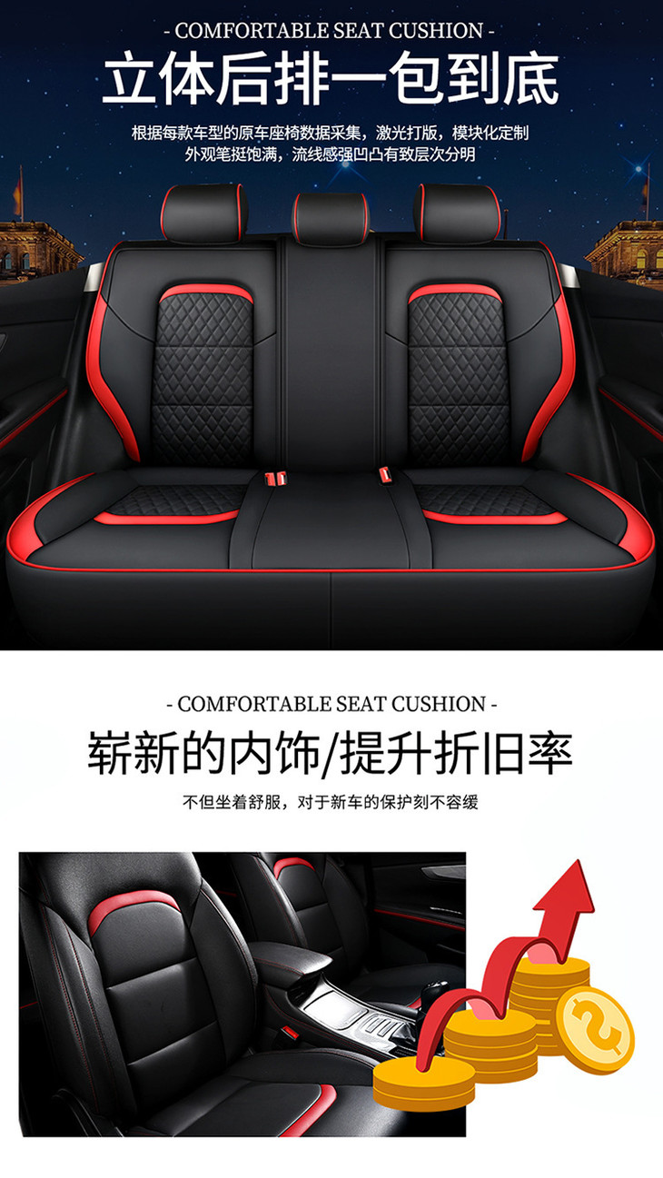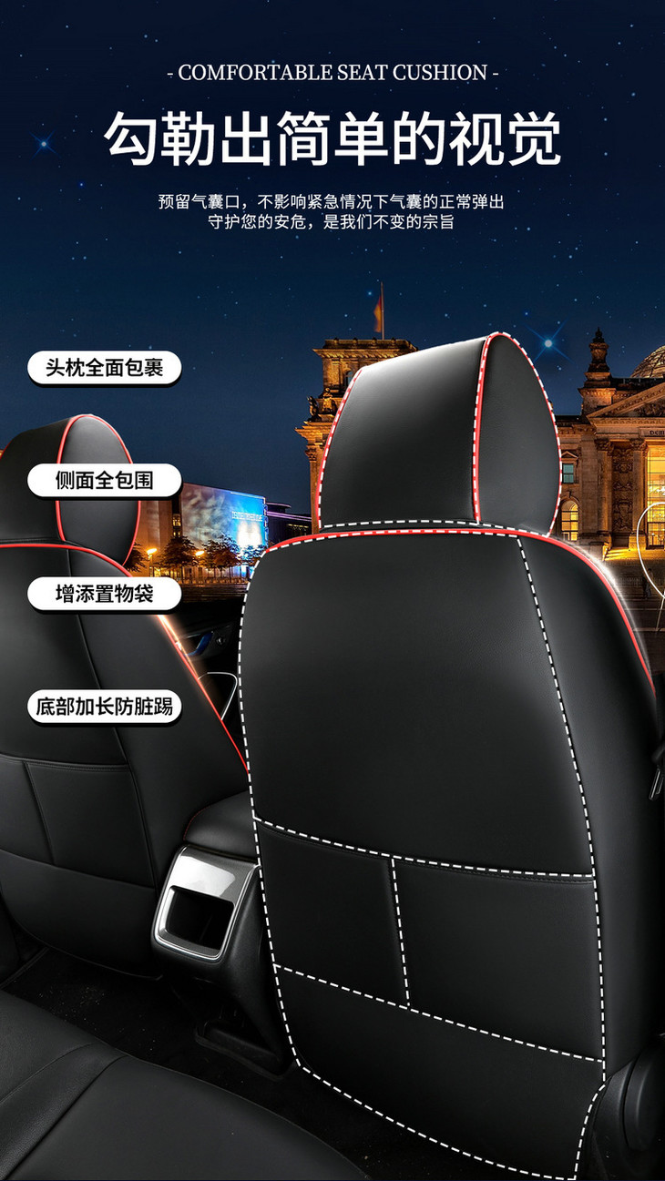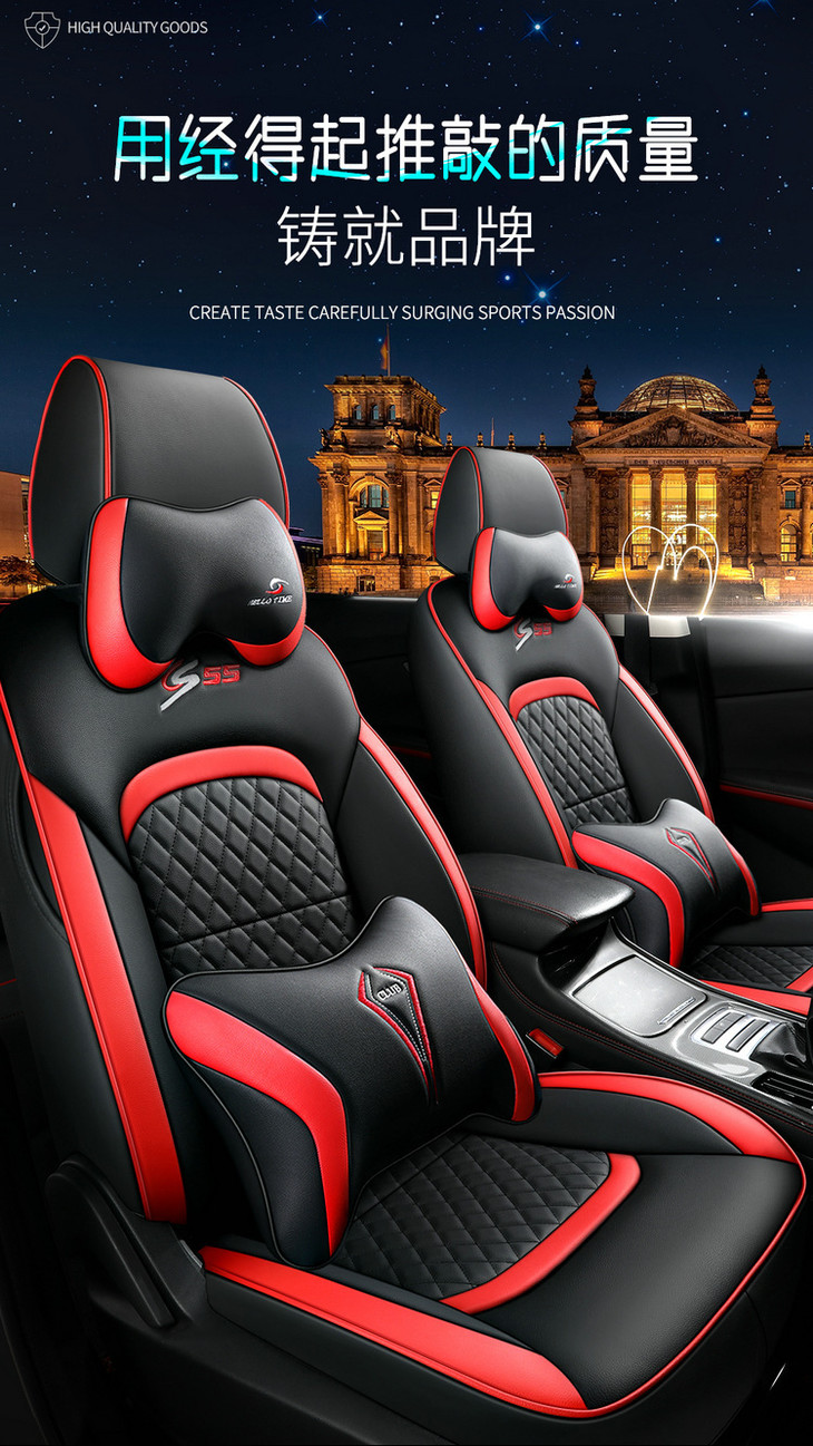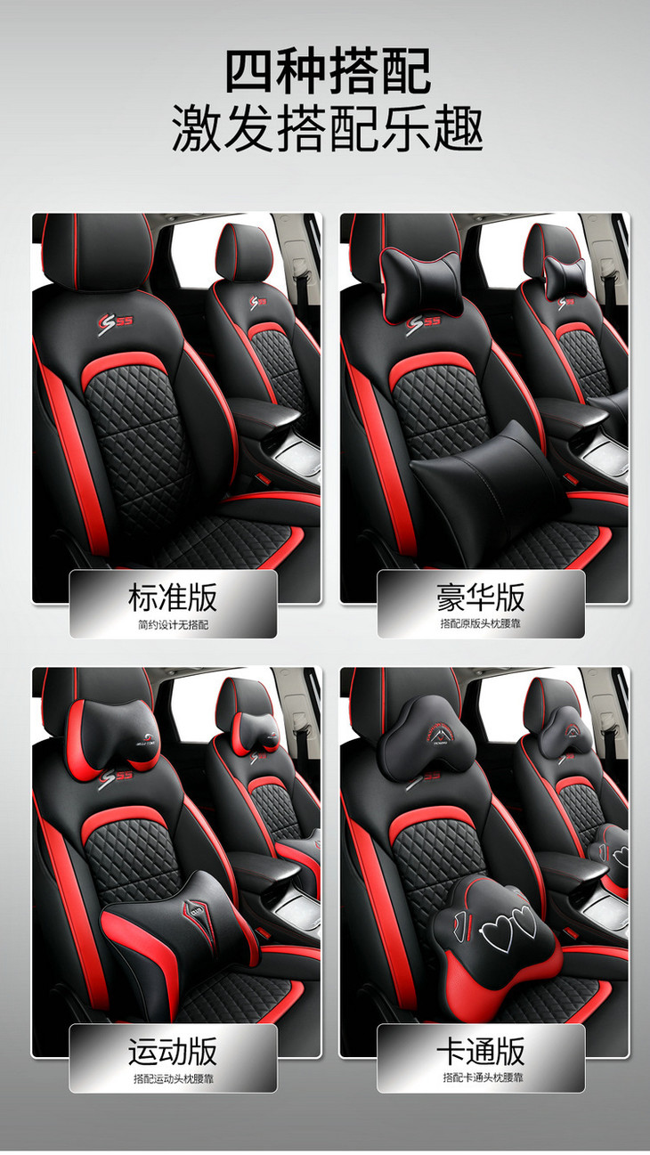 运动版包含:2个前排单座 2个后排靠背 1个后排三人座 1个后排扶手垫 ,还有2个头枕