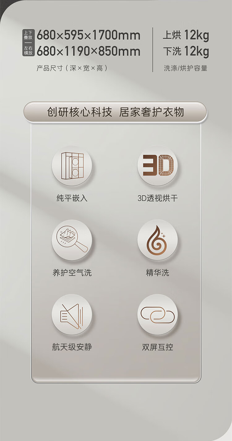 卡萨帝(Casarte)纤诺L7洗烘套装 精华洗滚筒全自动+双擎热泵烘干机 呼吸窗 3D透视烘干CGY 12FL7EU1+C1 DN12L7ELU1