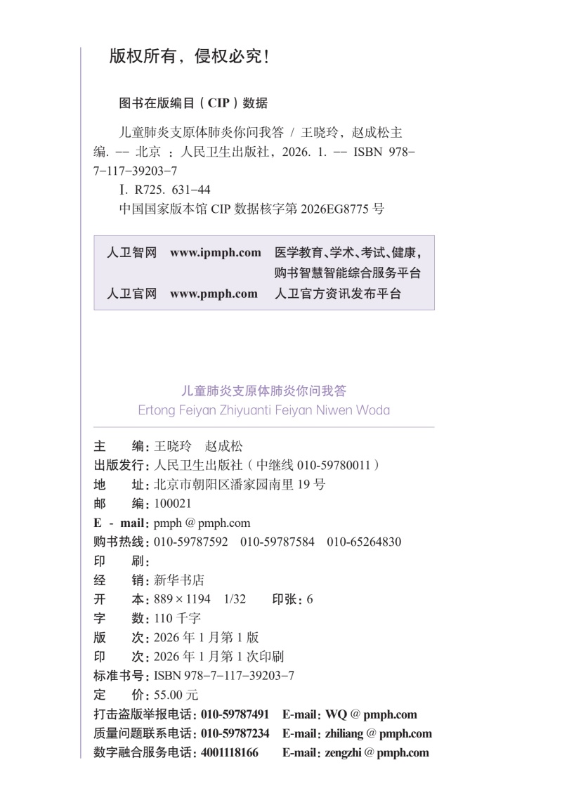 儿童肺炎支原体肺炎你问我答 王晓玲 赵成松 主编 家长必备的儿童呼吸健康指南 科普 疾病防治 9787117392037 人民卫生出版社