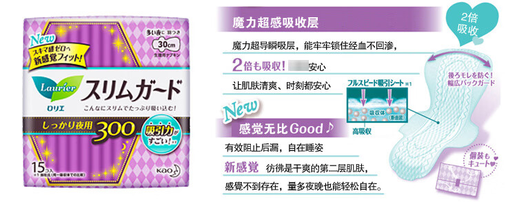 日本原装进口-乐而雅零触感特薄0.1cm夜用卫生巾(30cm) 15片/包