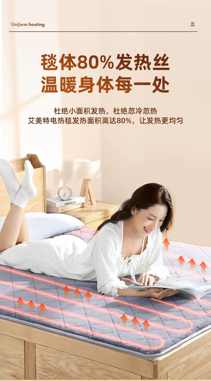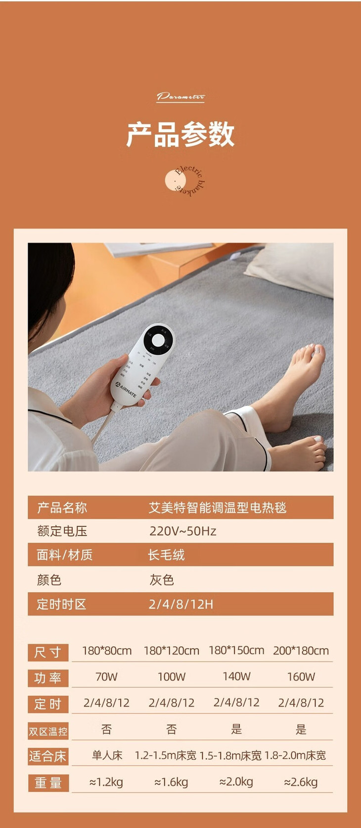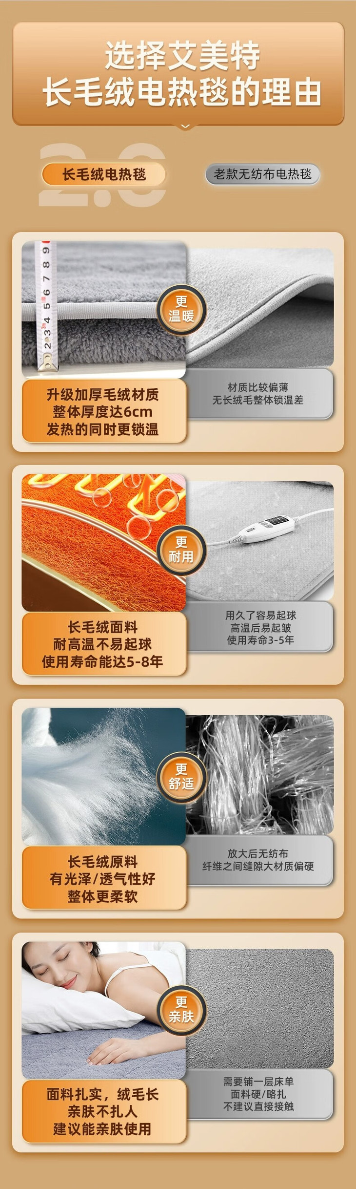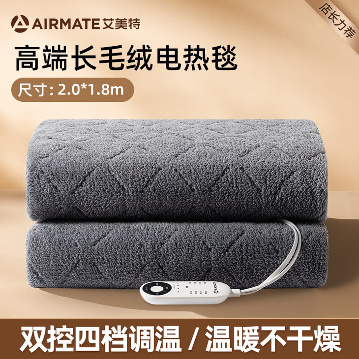 🌟🌟🌟【艾美特长毛绒电热毯】💕1、智能温控、✅热而不闷,✅防潮防螨,✅去湿暖被 ,恒温舒适~🎉🎉🎉~2、4档温控 ,🔺满足您不同需求、