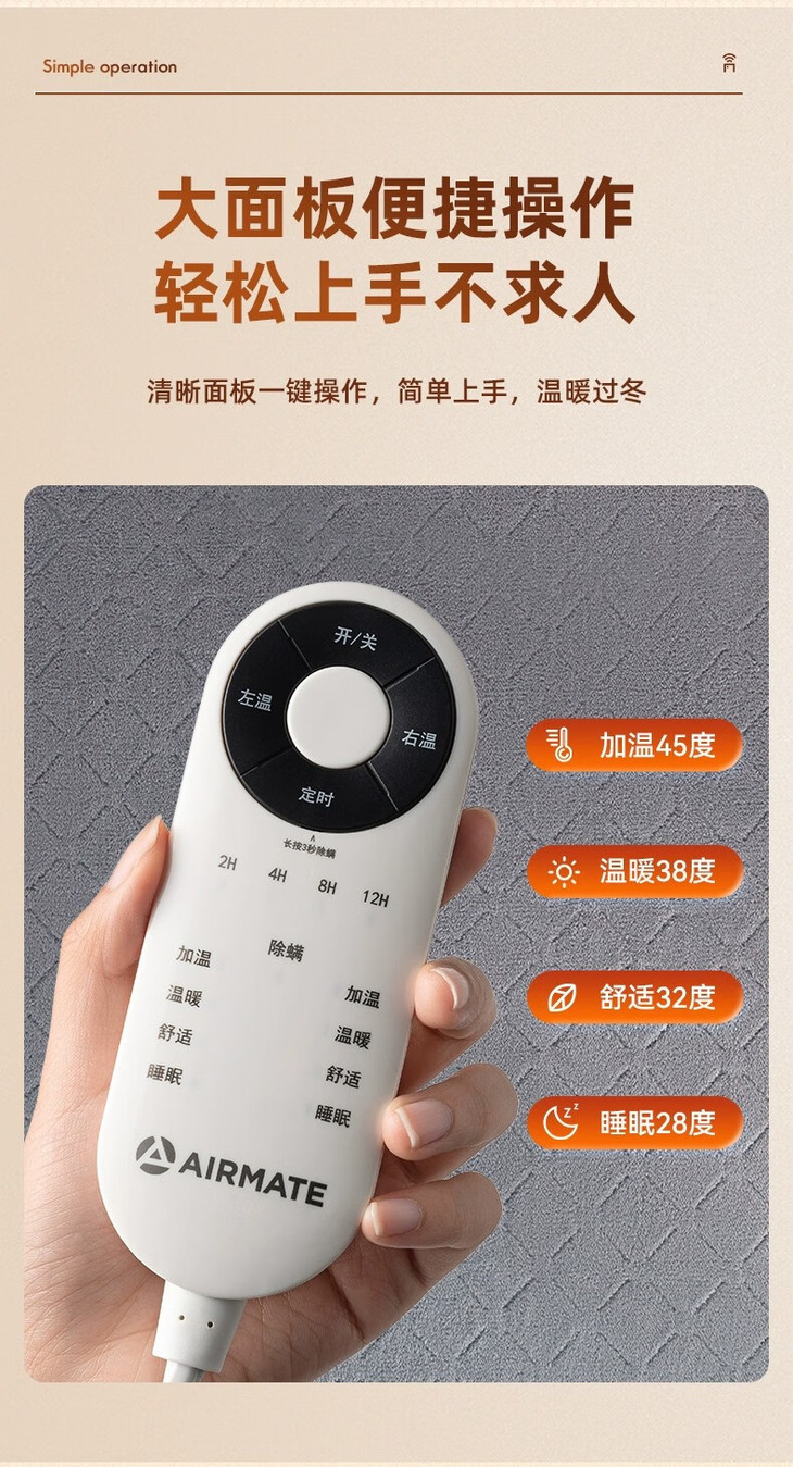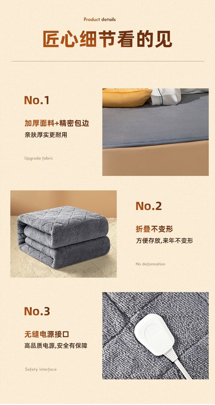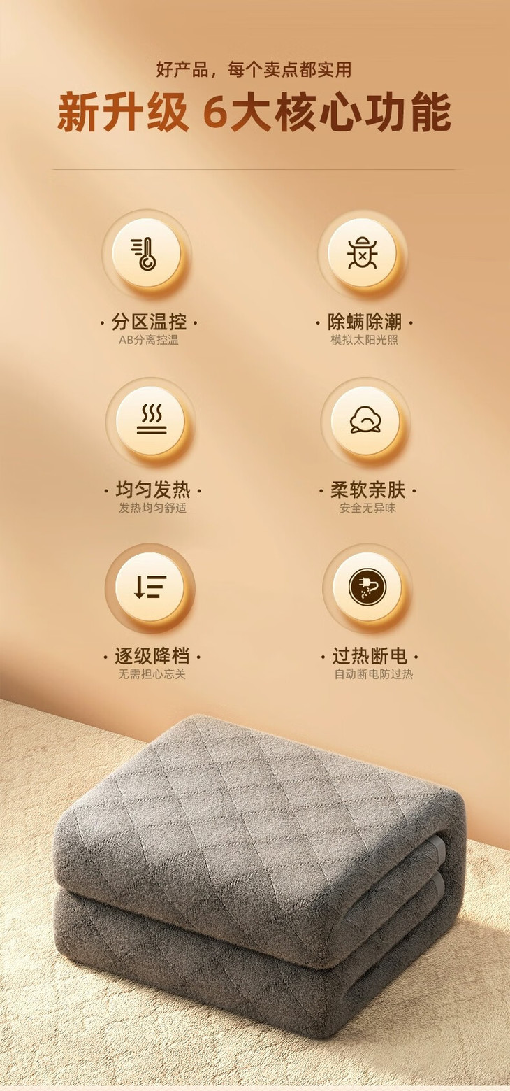🌟🌟🌟【艾美特长毛绒电热毯】💕1、智能温控、✅热而不闷,✅防潮防螨,✅去湿暖被 ,恒温舒适~🎉🎉🎉~2、4档温控 ,🔺满足您不同需求、