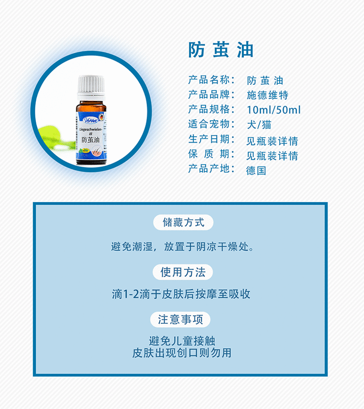德国原装进口 CDVET施德维特 防茧油 滋润皮肤柔化角质促进皮肤长毛10ml/50ml