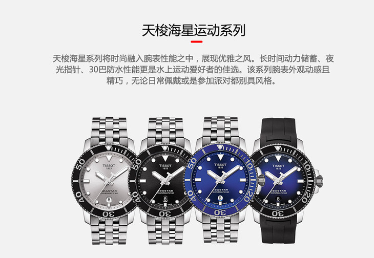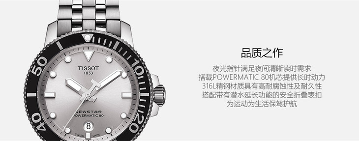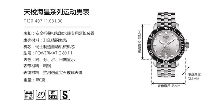 | 防水 | 300 m | 表带 | 精钢表链 安全折叠扣和潜水服专用延长装置 |