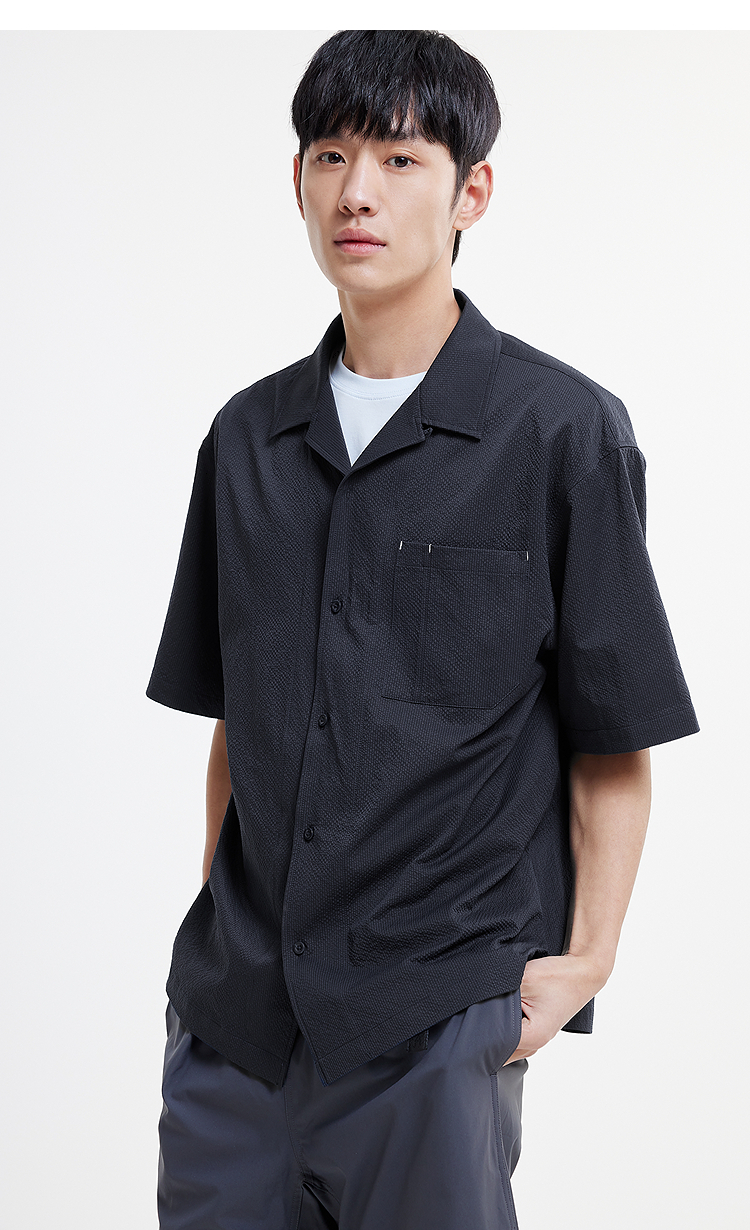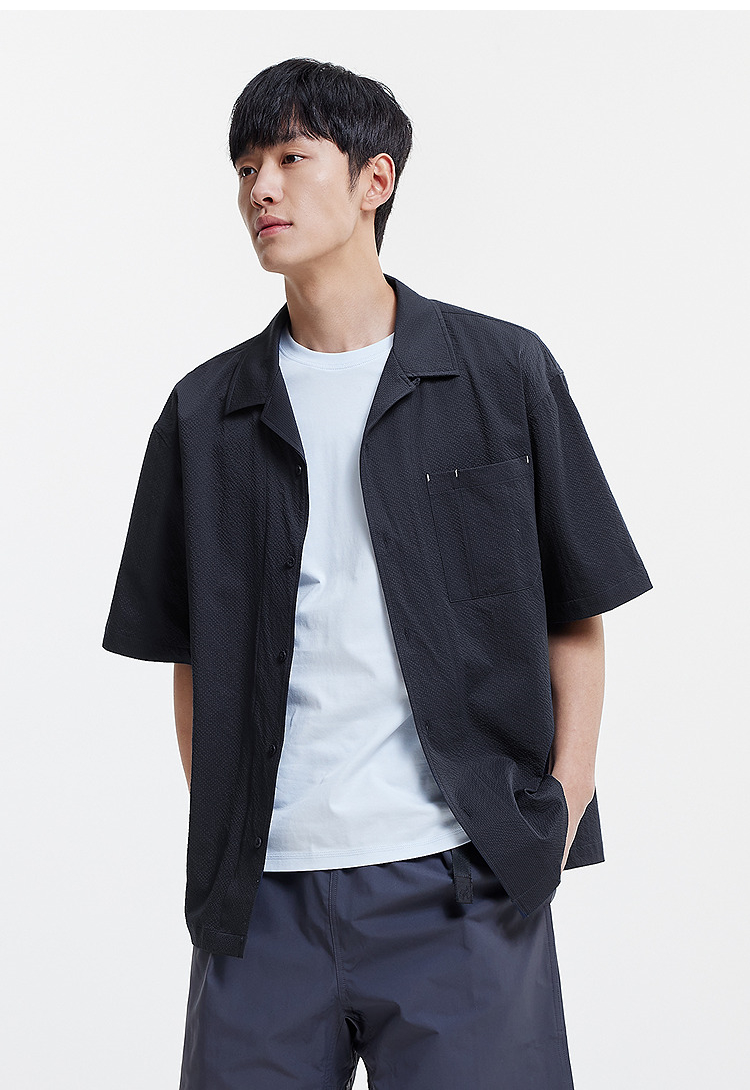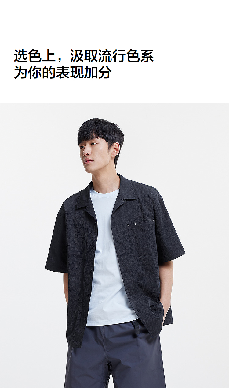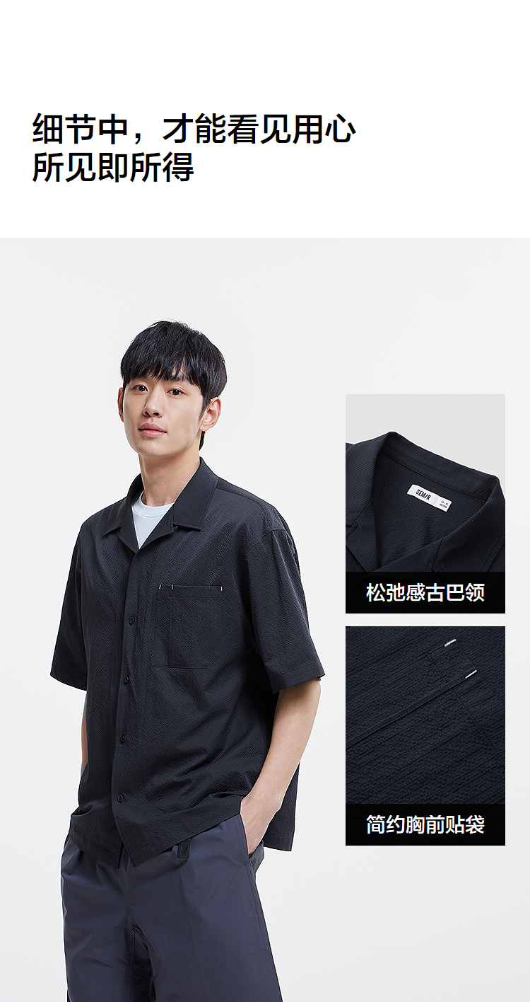森马短袖衬衫男松弛肌理感度假风衬衣2025夏新款上衣纯色百搭宽松