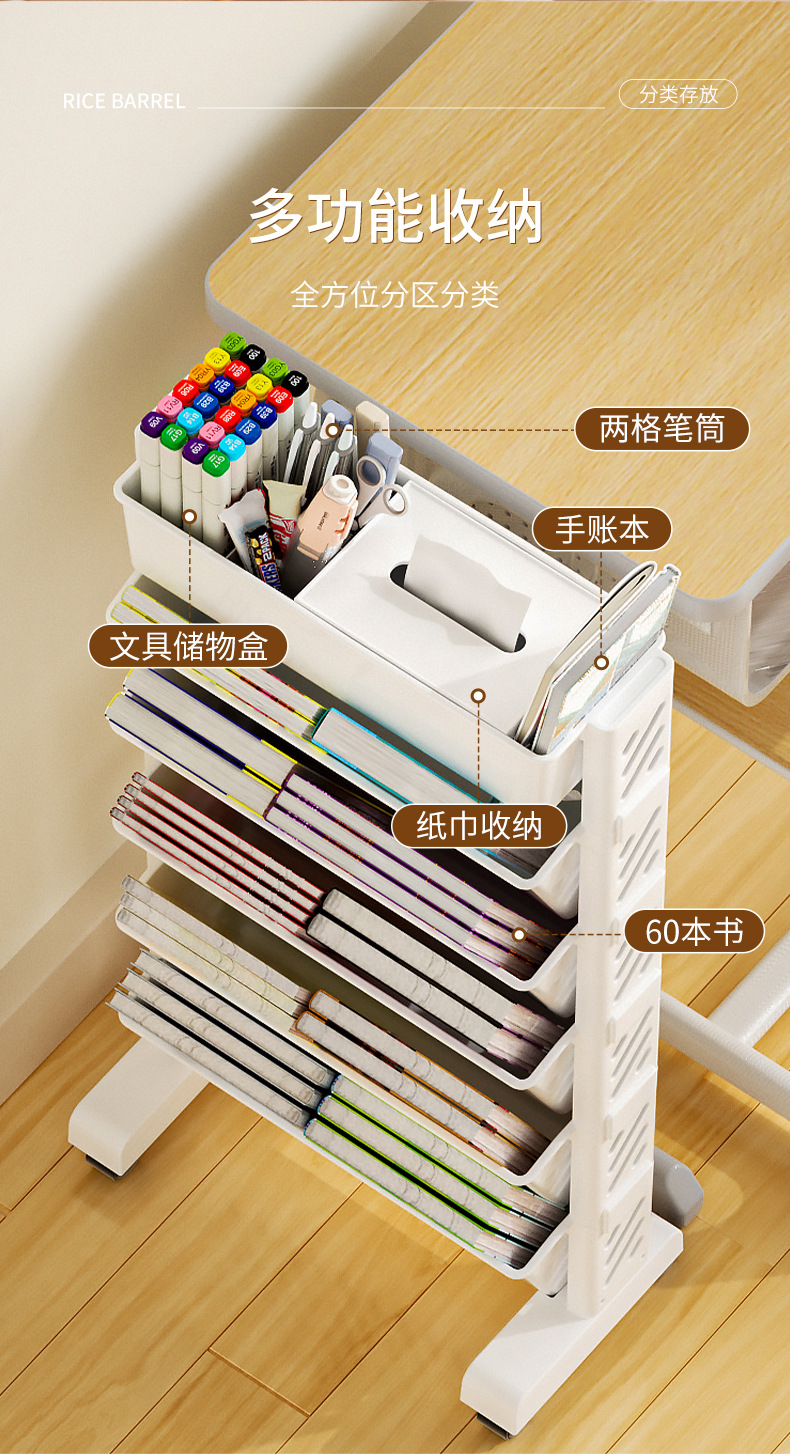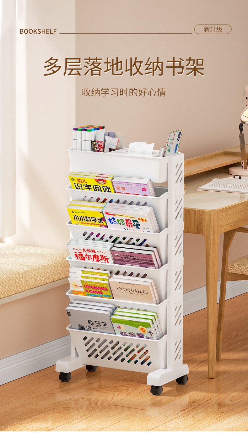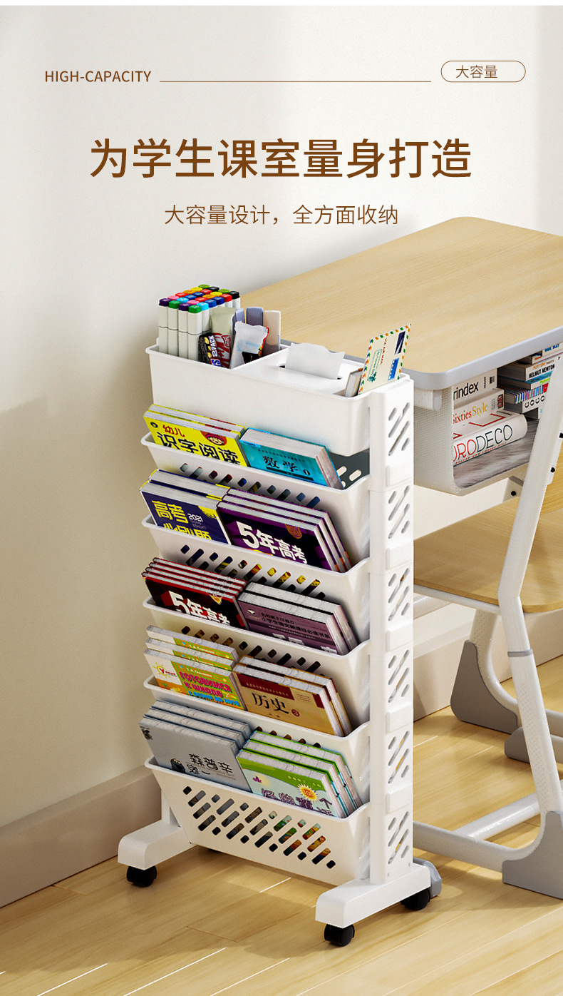 【为学生课室量身打造】多层落地收纳书架 大容量装书 夹缝收纳 全方位收纳分区分类 灵活利用空间 儿童绘本架书本收纳架