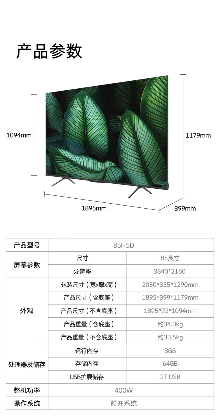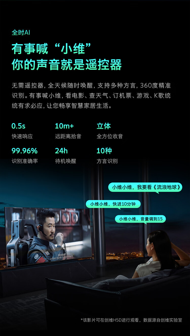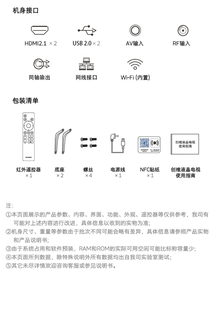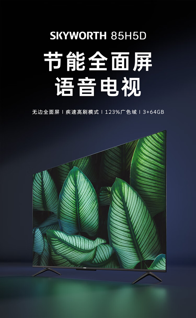创维电视 85英寸 无边全面屏 远场语音 疾速高刷 健康护眼 123%广色域 3+64G电视机 会议电视85H5D