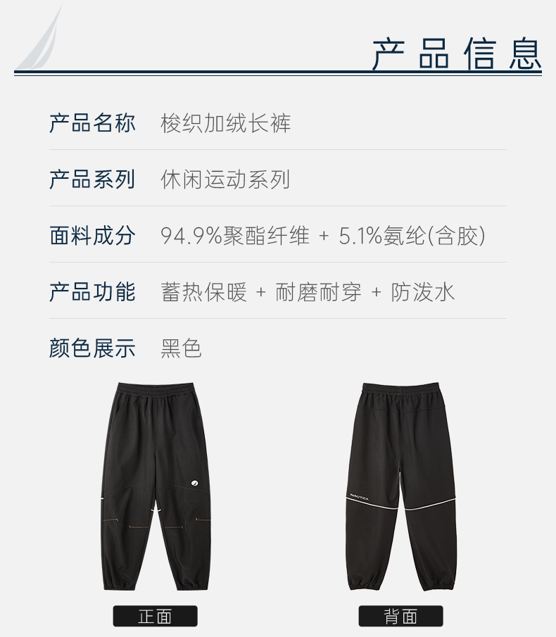 NAUTICA诺帝卡童装 梭织加绒长裤 NK340184 商品图4