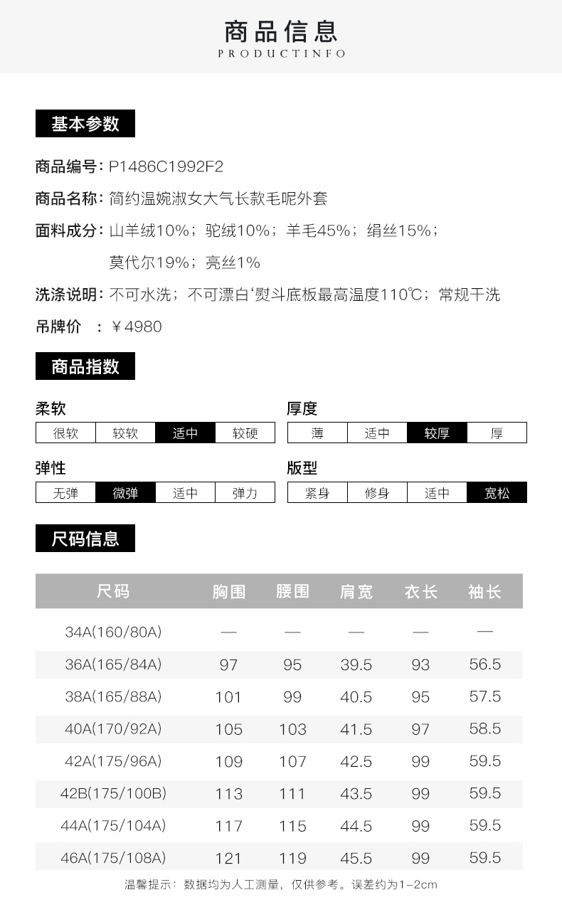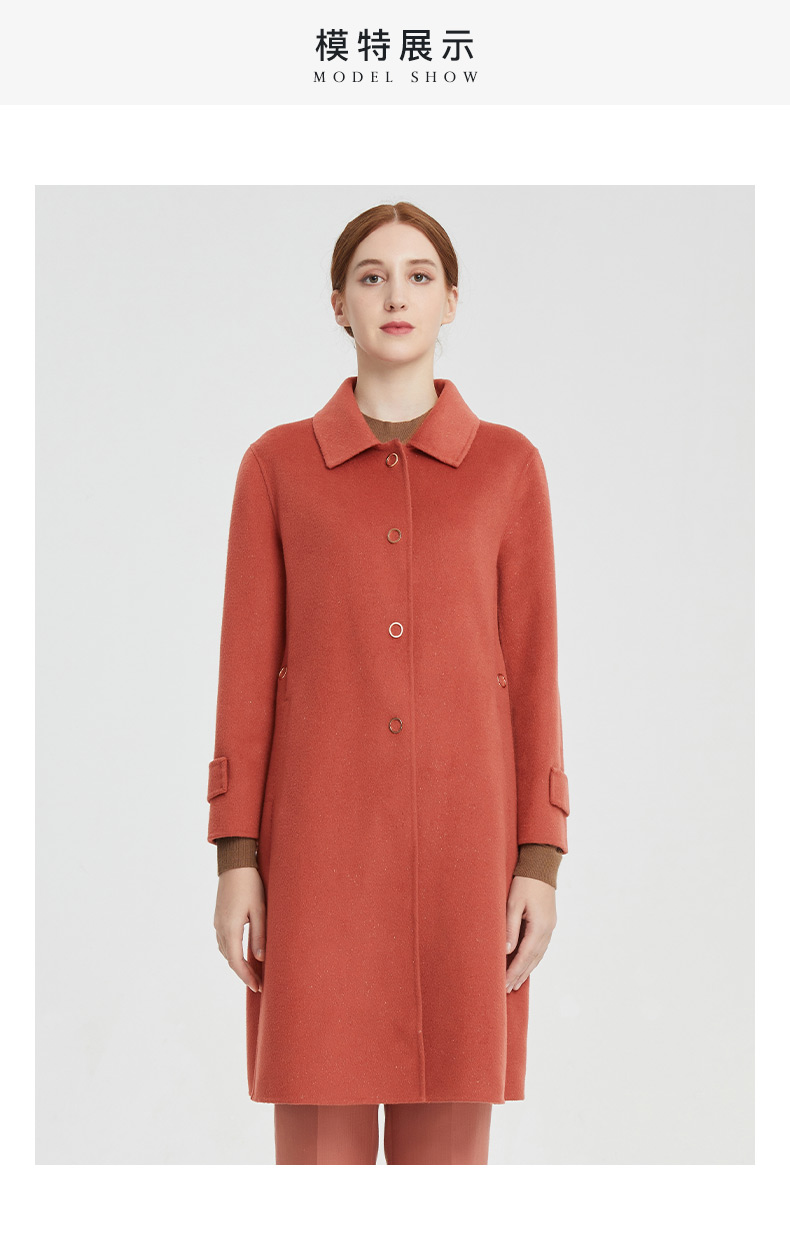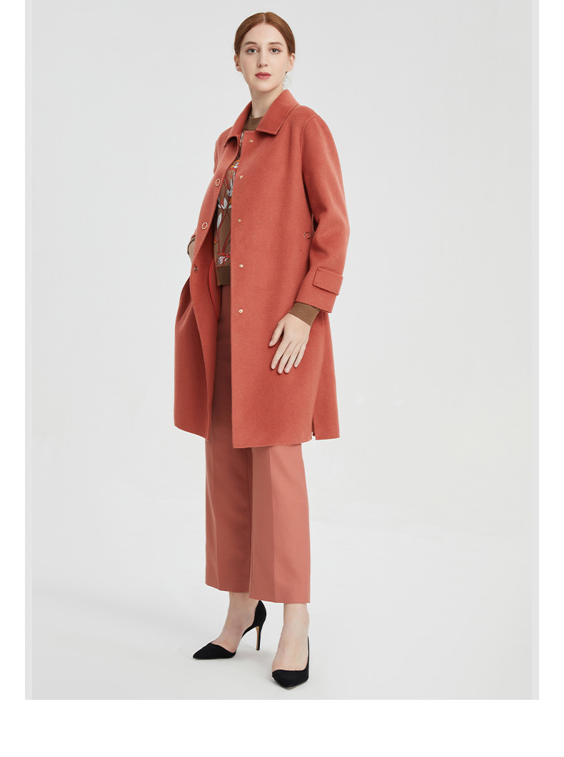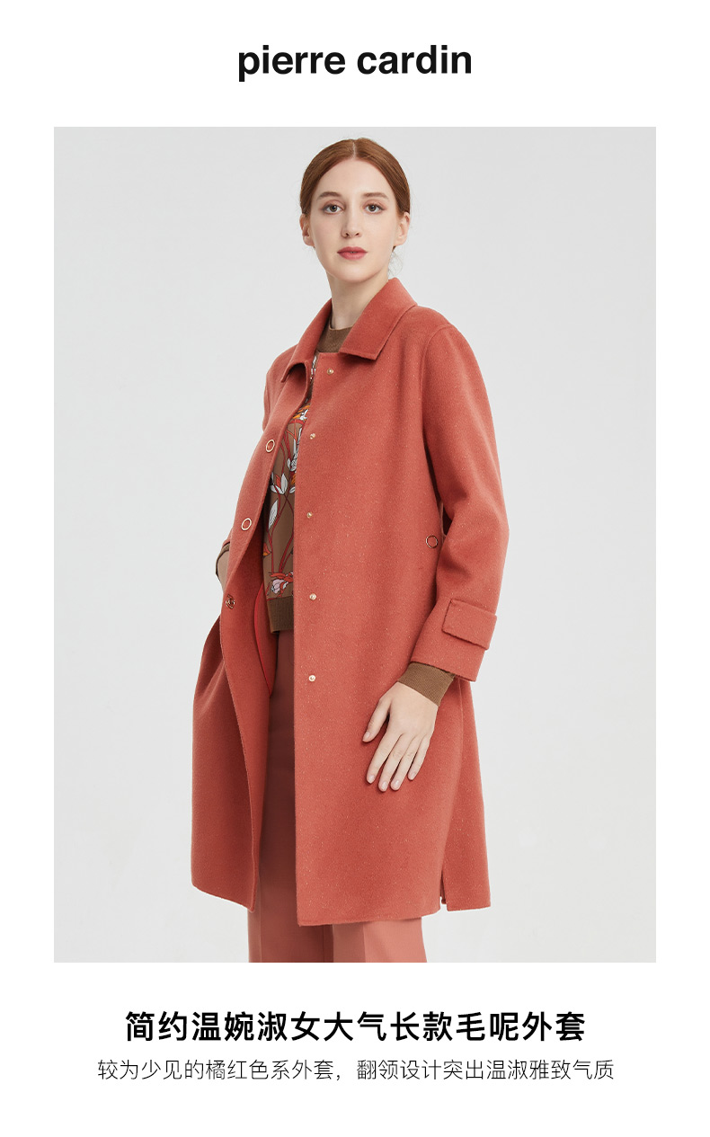 皮尔卡丹女装大衣双面呢羊绒中长款商务通勤毛呢外套P1486C1992F2