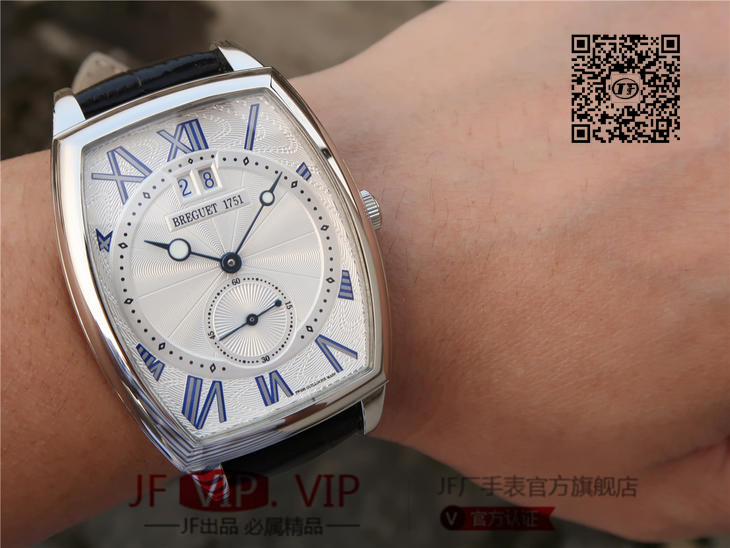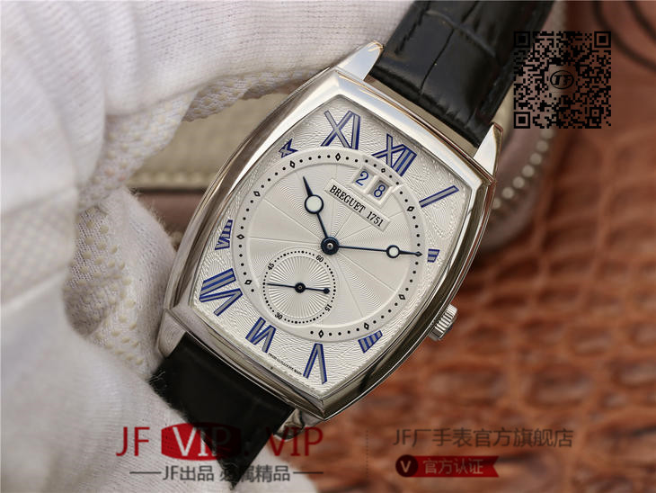 HG宝玑传承系列大日历显示腕表,别致的酒桶形表壳融合复杂功能于一身的5410,表壳外缘饰有钱币纹。