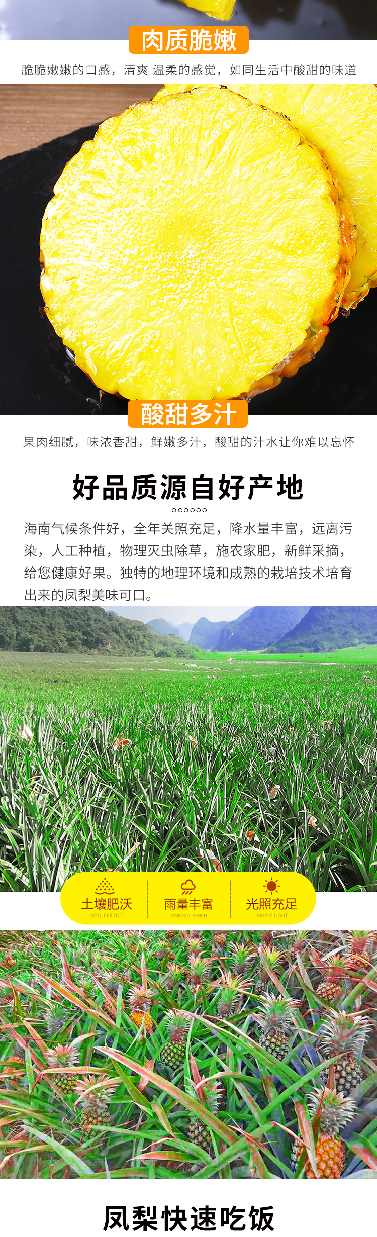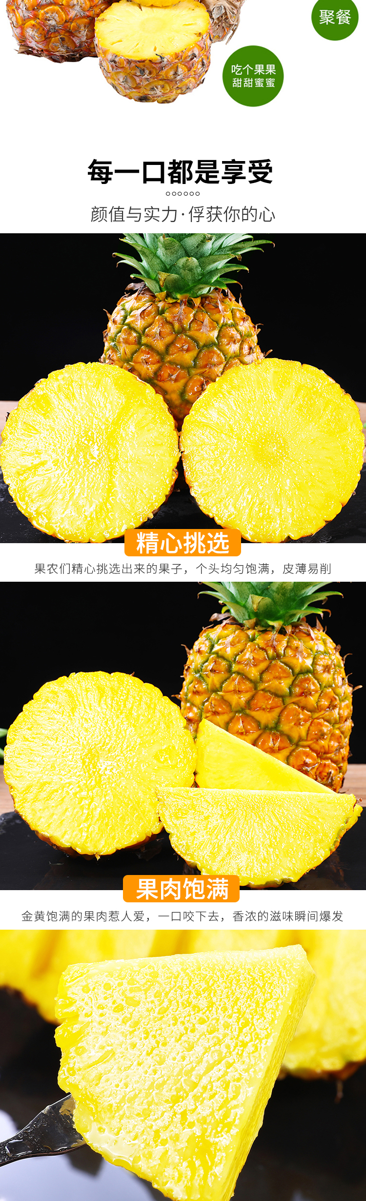 金钻凤梨 皮薄肉厚爽口化渣 酸酸甜甜纤维柔脆 清甜多汁 果肉细腻无渣 新鲜现摘 一件包邮