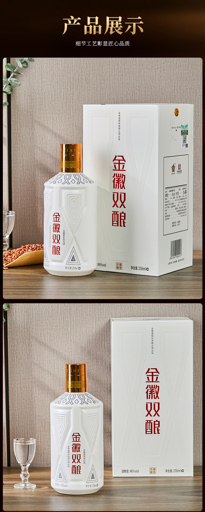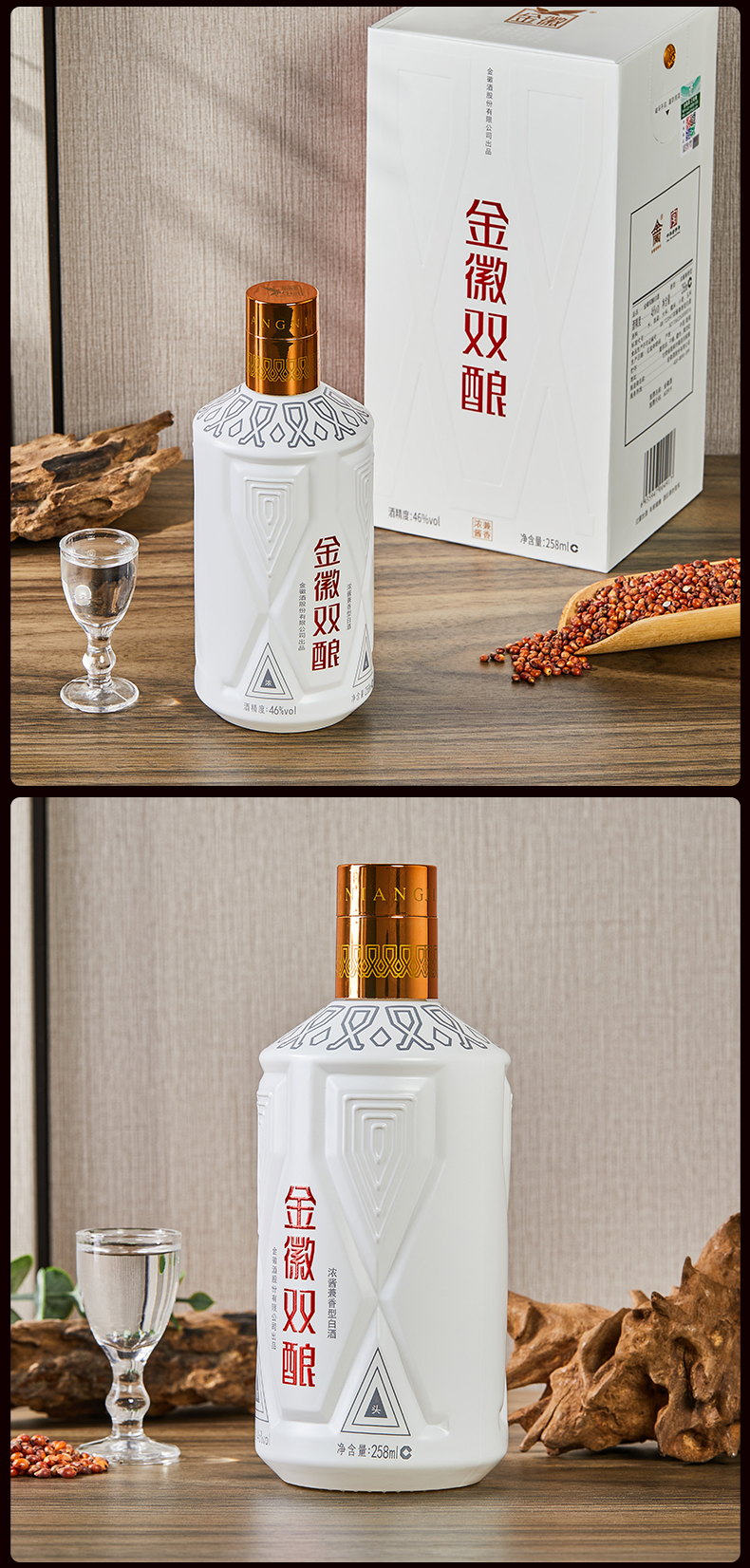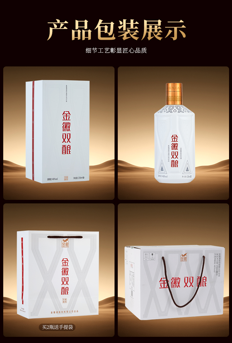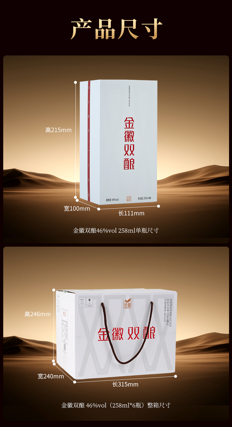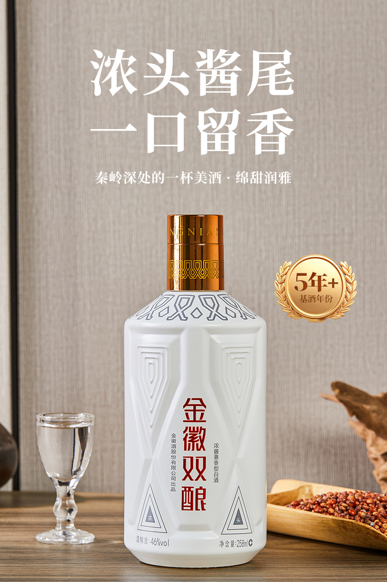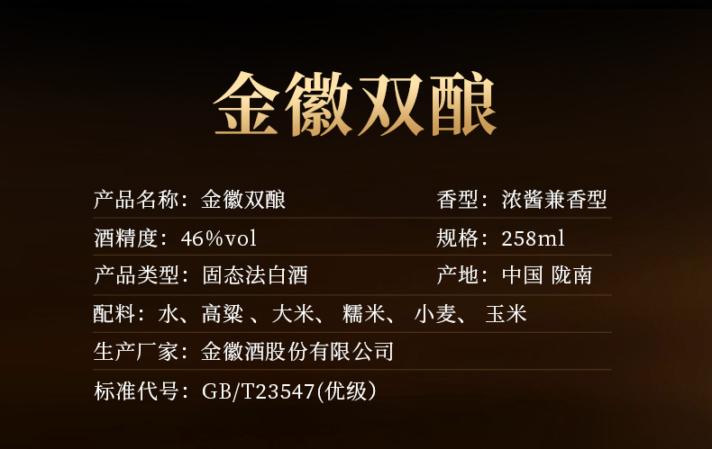 【兼香型尝鲜首选–买1瓶赠1瓶】46度金徽双酿 258ml 浓酱兼香型白酒