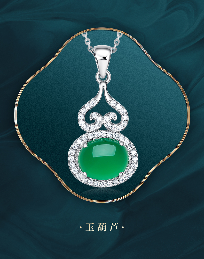 周大生S925银镶嵌玉髓项链(送银链)