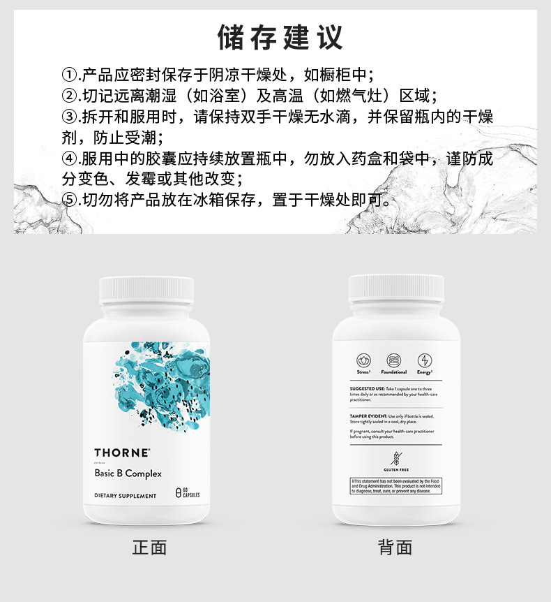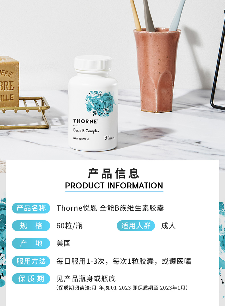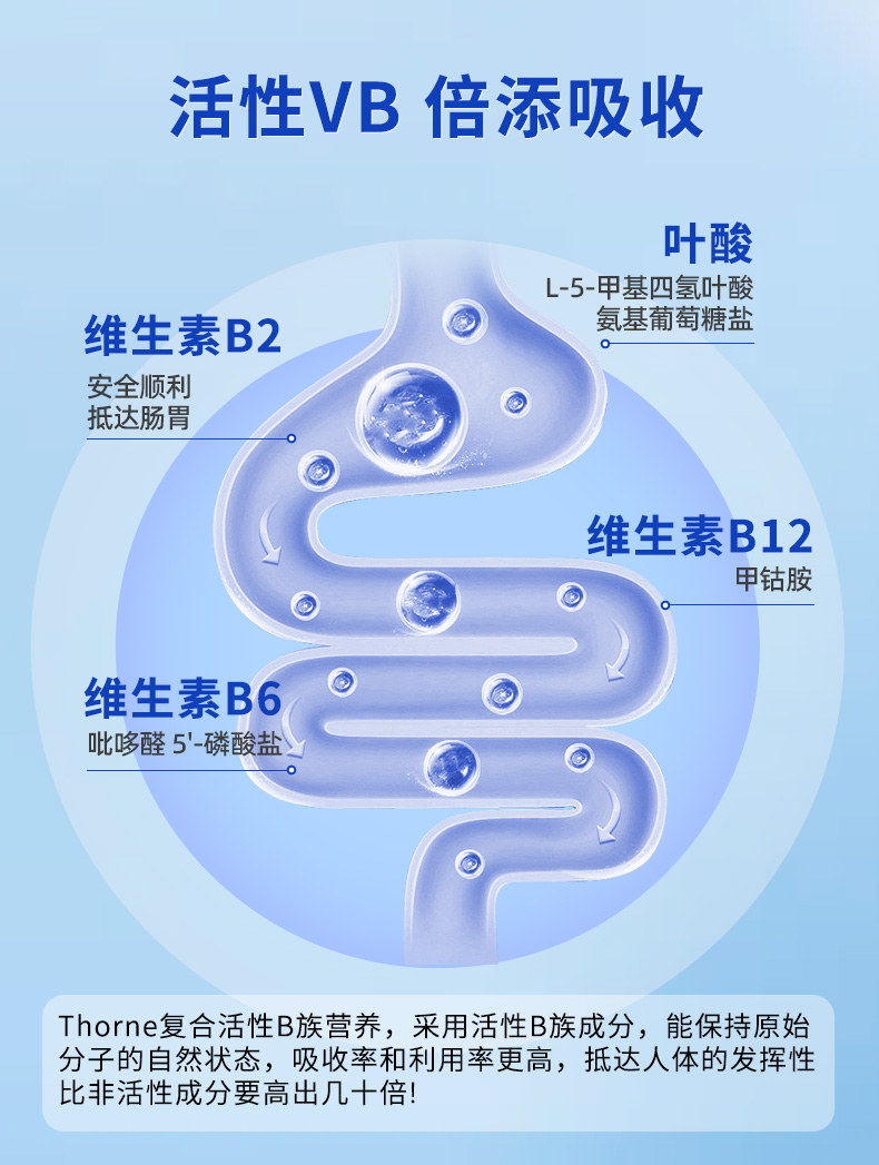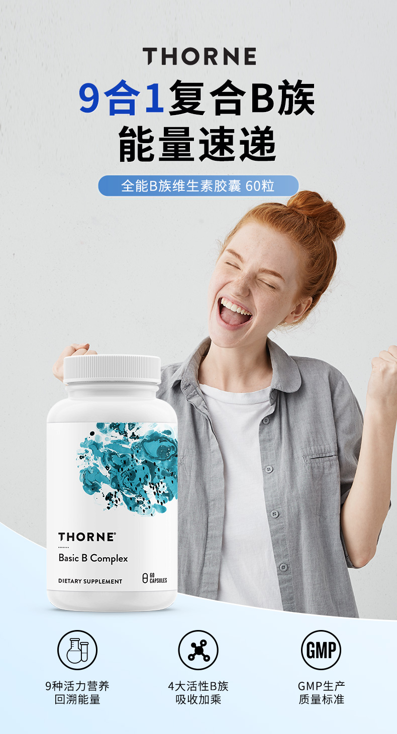 Thorne悦恩美国进口复合活性B族维生素b胶囊 男女活性VB官方旗舰B104