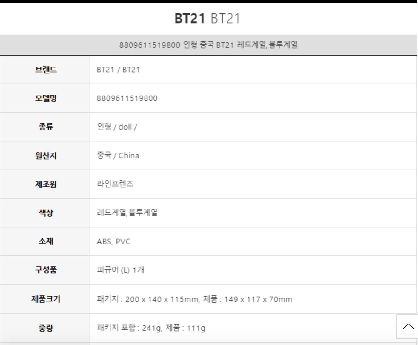 韩国 可爱Line Friends BT21 TATA站立图(L)JPY带授权招加盟代理