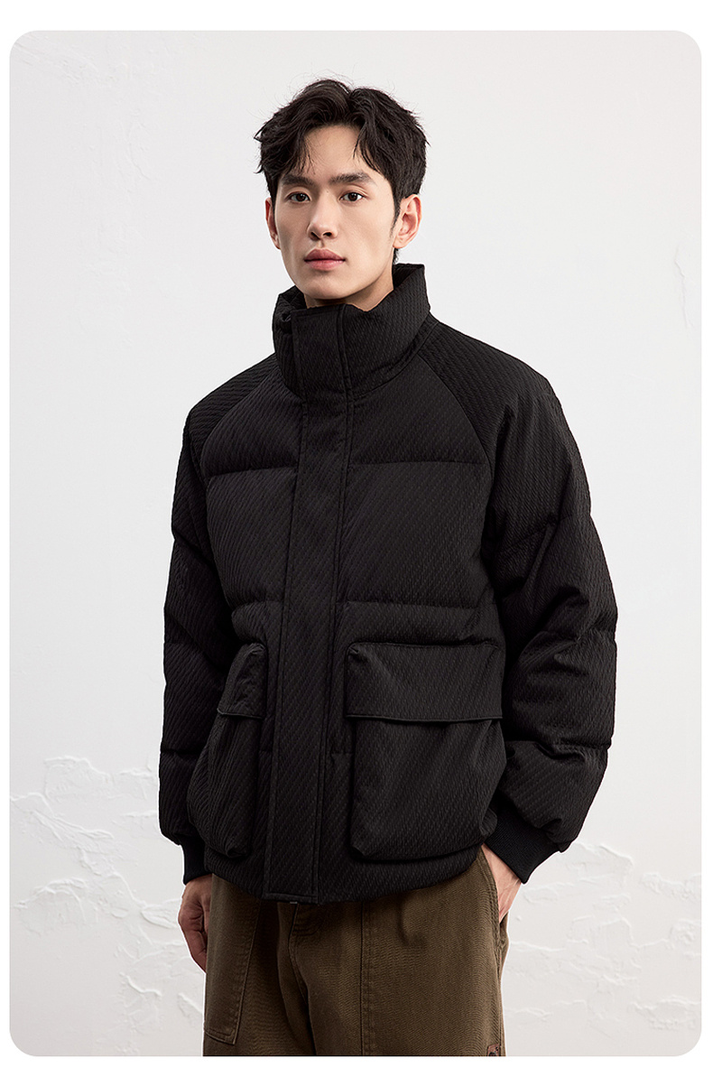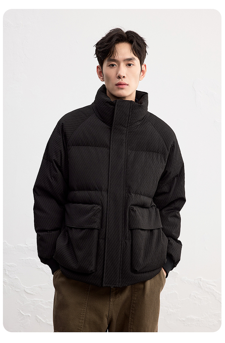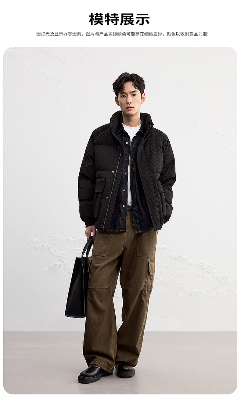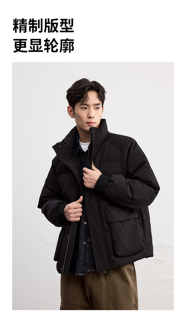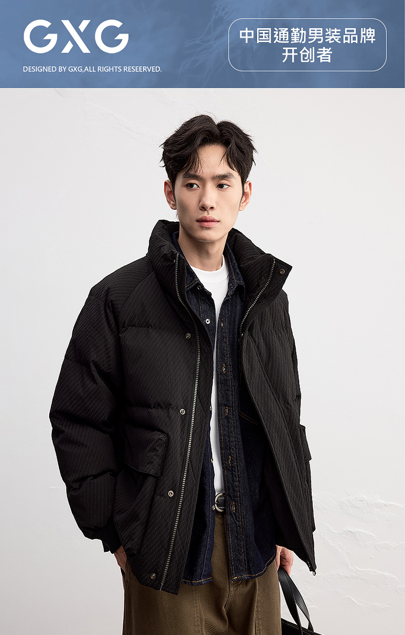 GXG男装【90鸭绒】25冬季简约纯色保暖立领宽松口袋男式羽绒服K&C