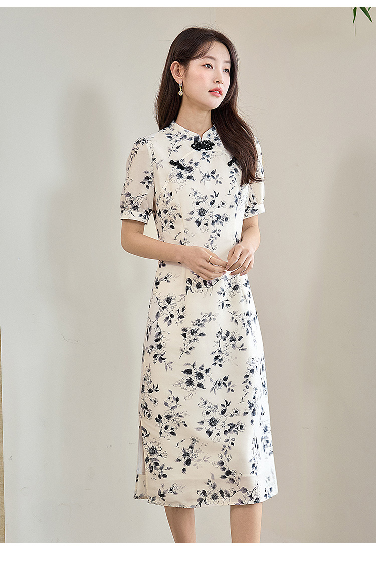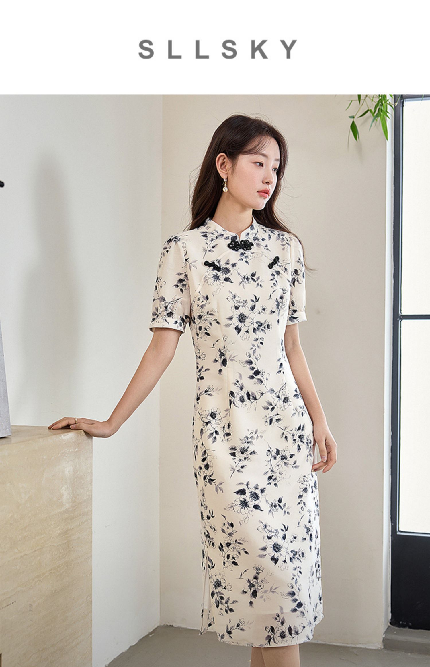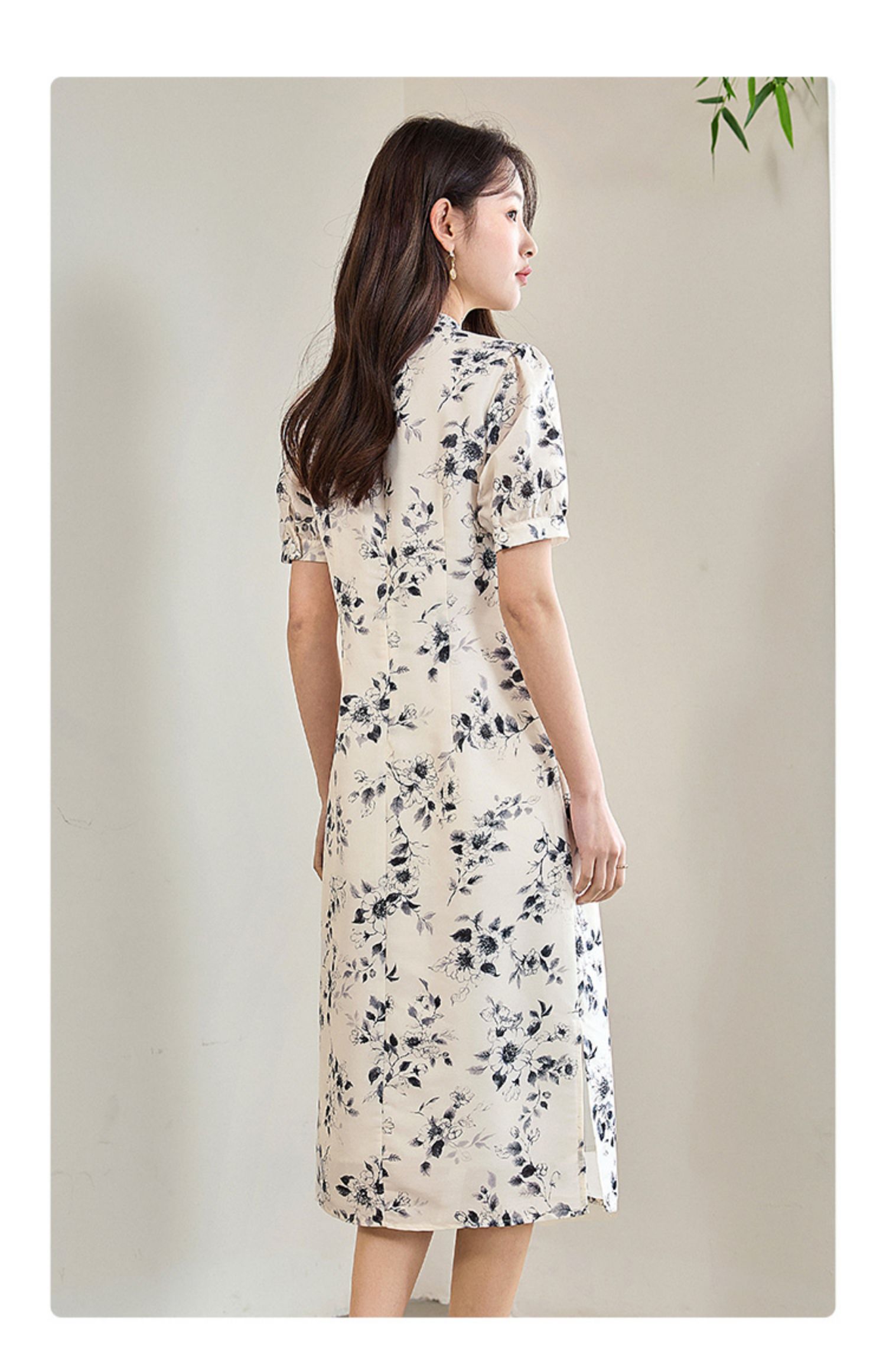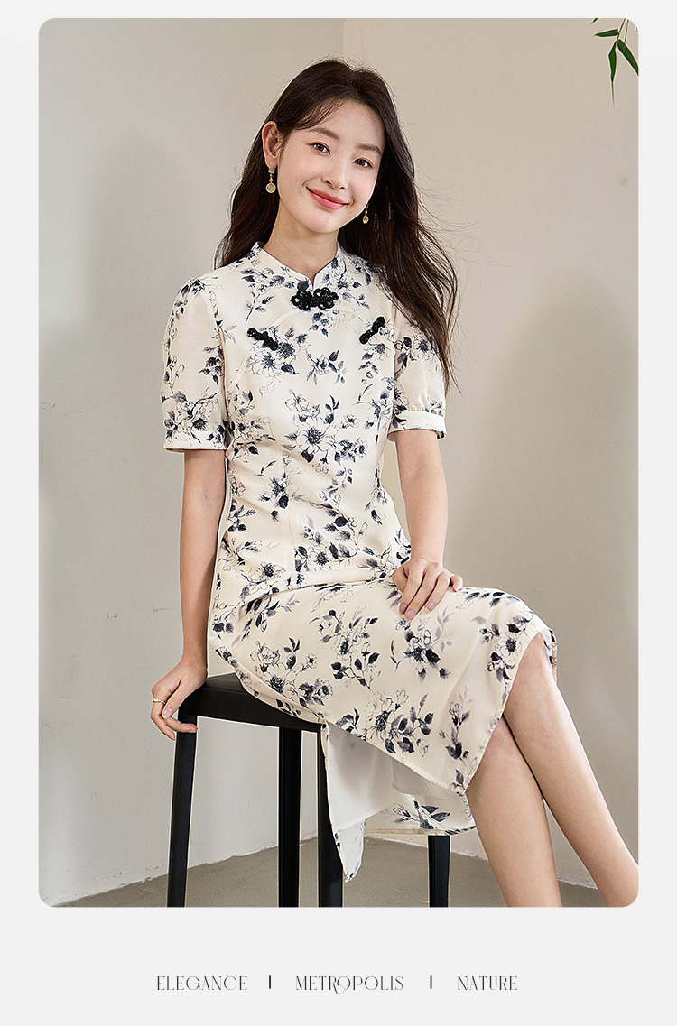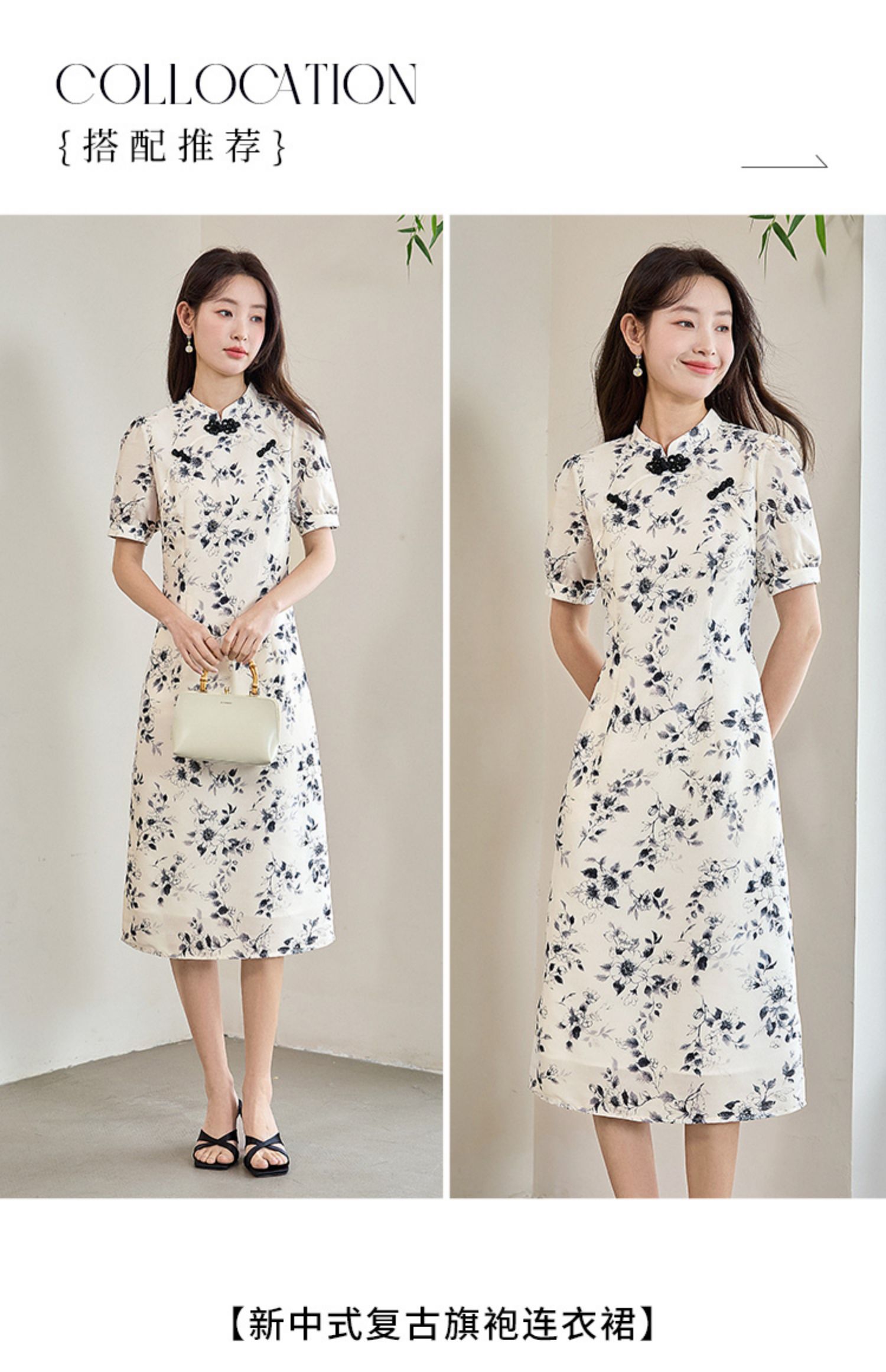 【专属特价】熙世界2025夏季新款新中式改良旗袍连衣裙复古水墨碎花国风裙子