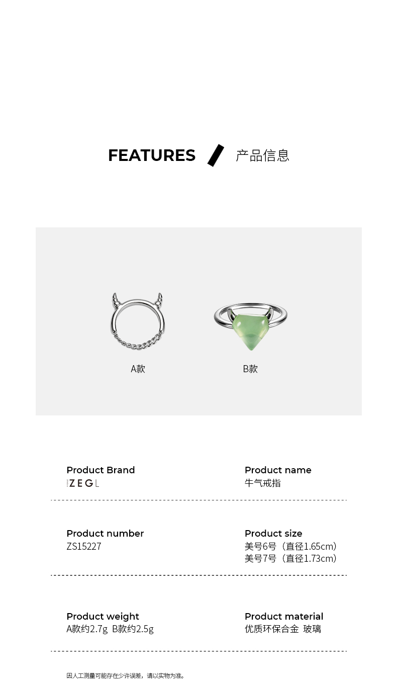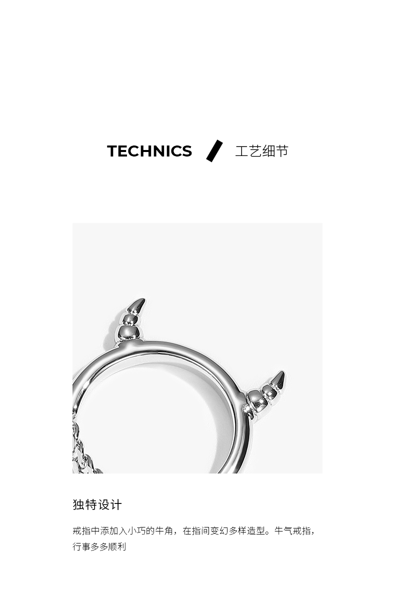 ZENGLIU设计师本命年牛角戒指女小众设计简约指环冷淡风食指戒指