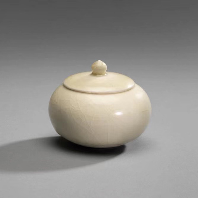 此款产品设计源自隋代的白瓷钵盂,口沿内收,鼓腹,圜底,带宝珠钮盖。原型可见陕西西安郊区隋开皇十二年(592)吕武墓及西安市隋大业四年(608)李静训墓出土的两件带盖钵盂。此类器物在拍卖上也可见,如2014年邦瀚斯古雅致臻:奉文堂藏中国古代陶瓷专场一例,当时成交价为75000港元。