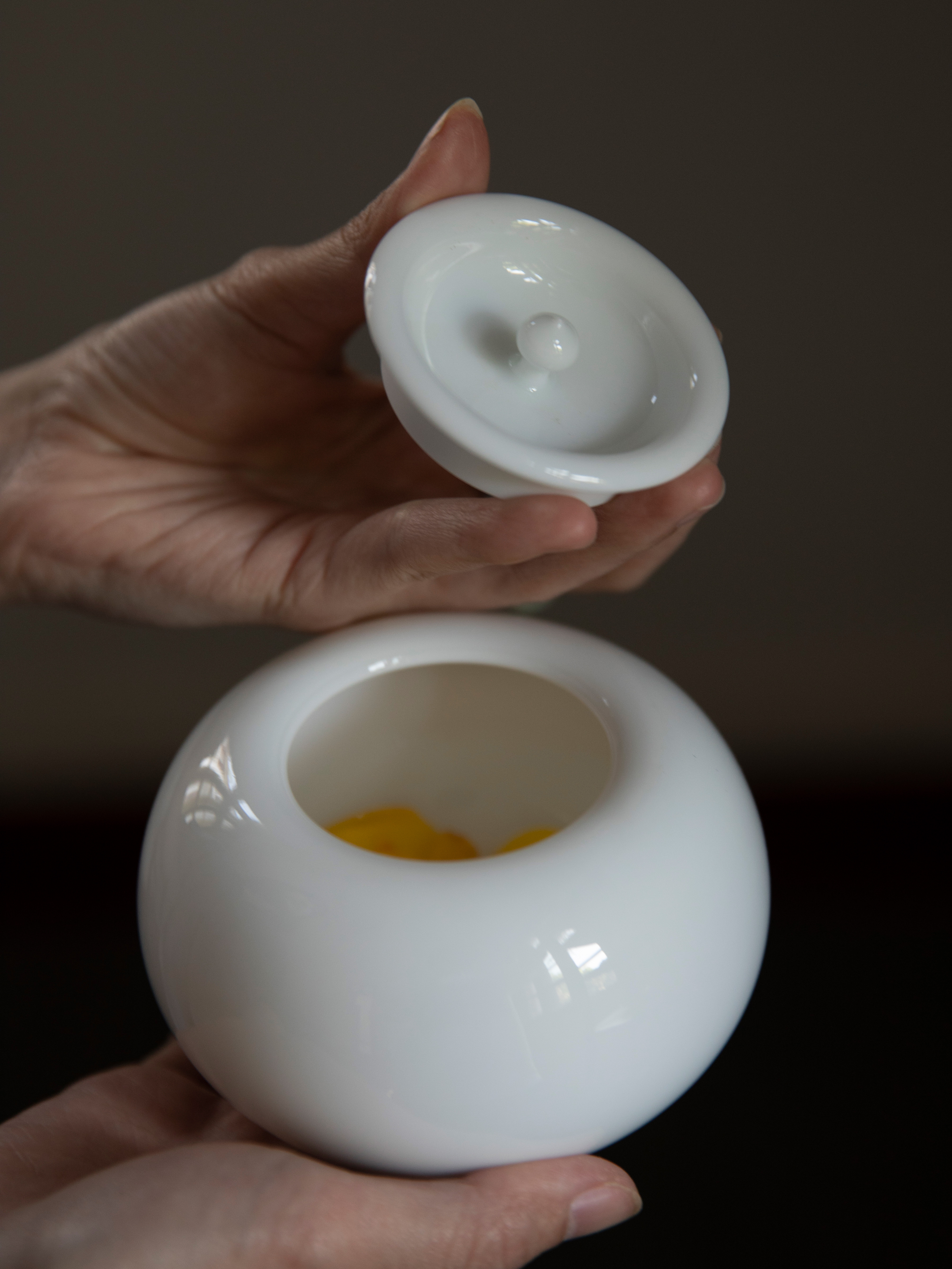 作为茶入,亦是茶席上的一个亮点。瓷器不会夺取茶的原味,用它来存放茶叶,会使香气凝聚,是藏茶保鲜的好帮手。