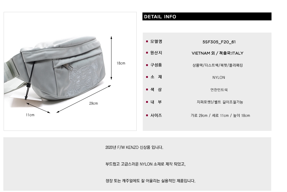 Kenzo 高田贤三男士老虎背包腰包 ( 5SF305 F20_61 20F) HmallJPY带授权招加盟代理