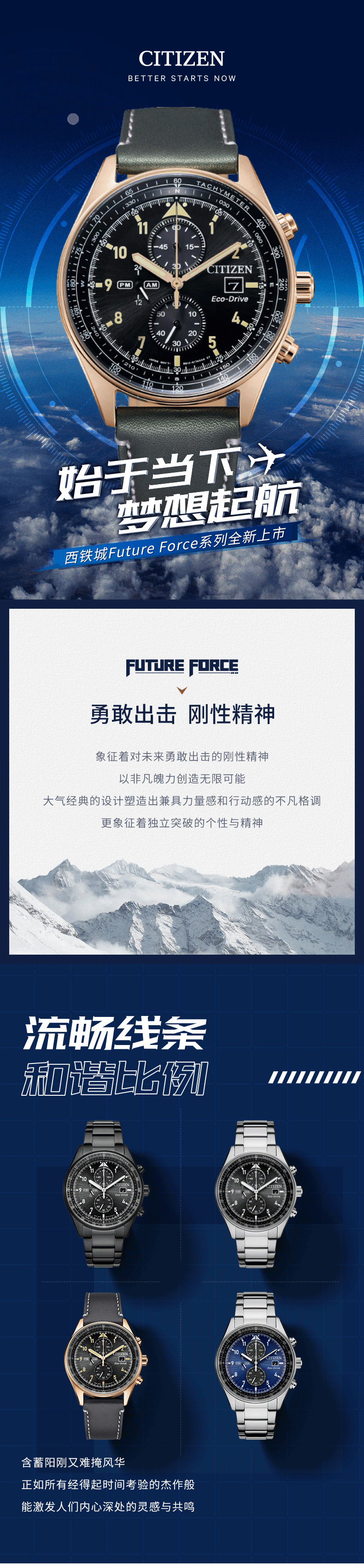 西铁城日本官方正品新款FF系列飞行风CA0773-15E