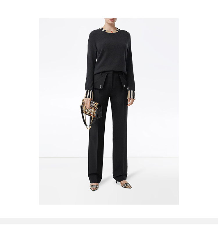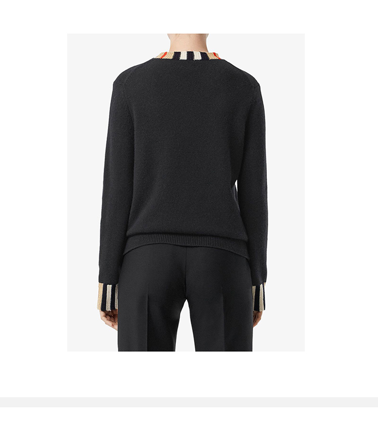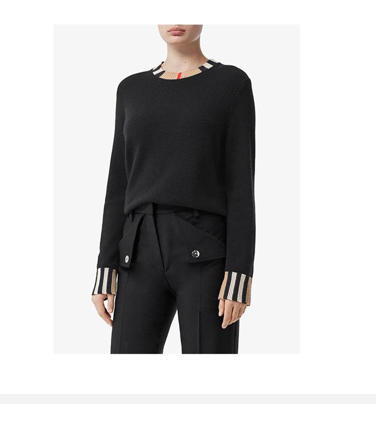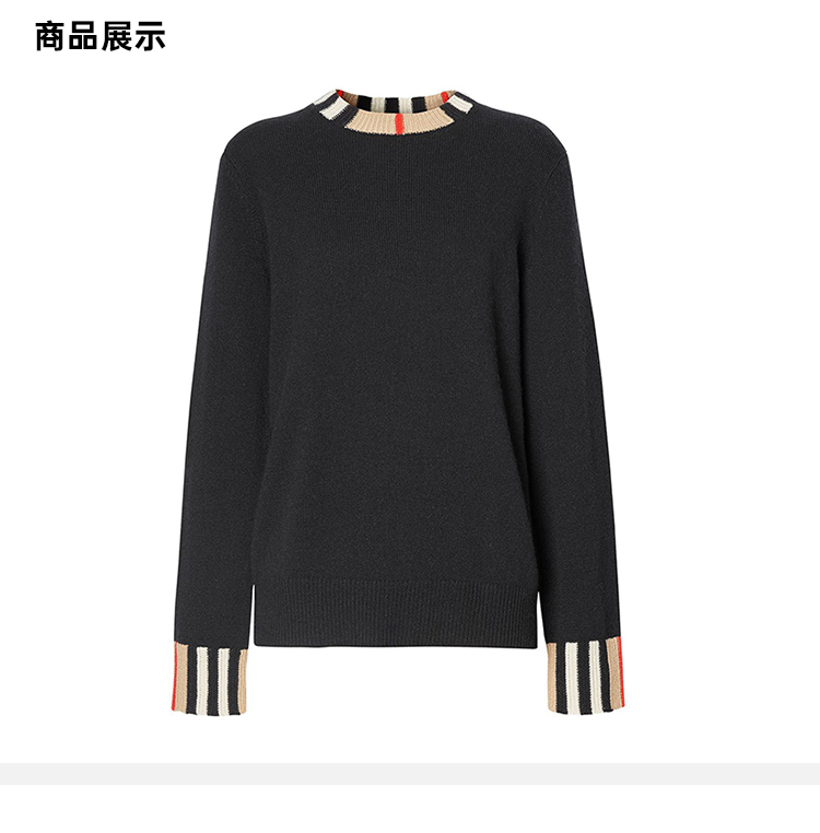 【二】BURBERRY 巴宝莉 女士 格纹边缘圆领长袖羊毛衫 黑色 8008939 A1189