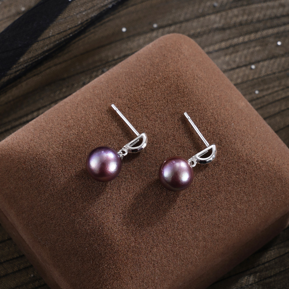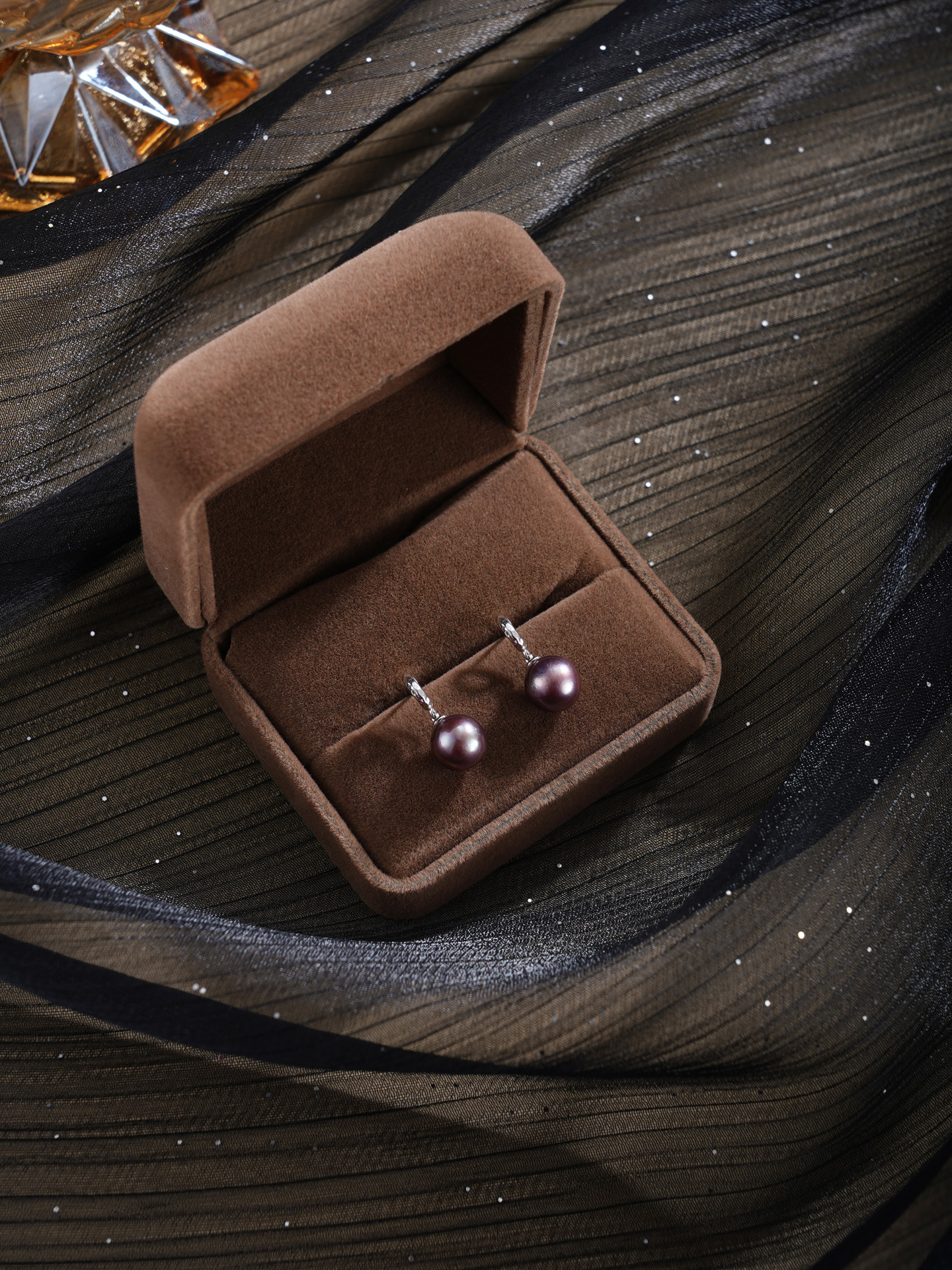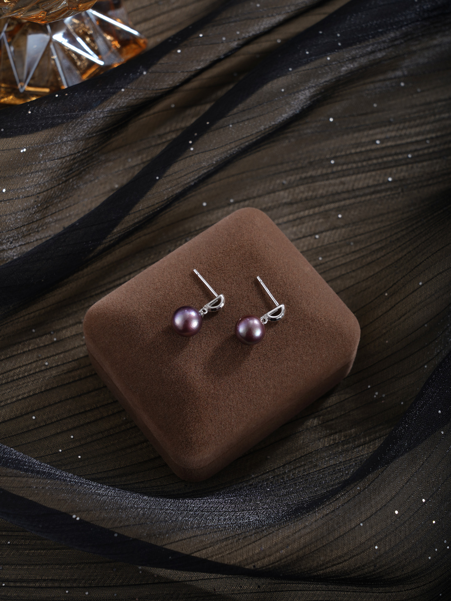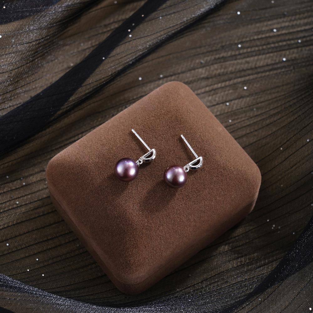 子佩集【紫气东来】银S925珍珠惜王妃耳钉【MLEH044】紫吊球2602