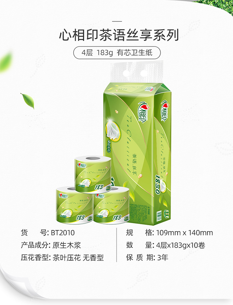 【心相印专区】茶语经典BT2010系列183克10粒装四层卷筒,6提/箱
