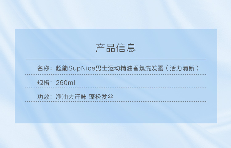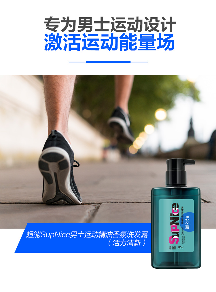 超能supnice男士运动精油香氛洗发露:海洋酷爽/活力清新 (260ml/600ml)