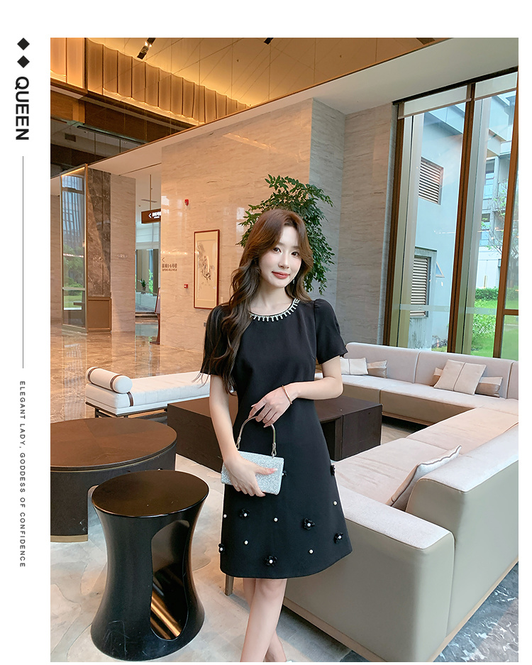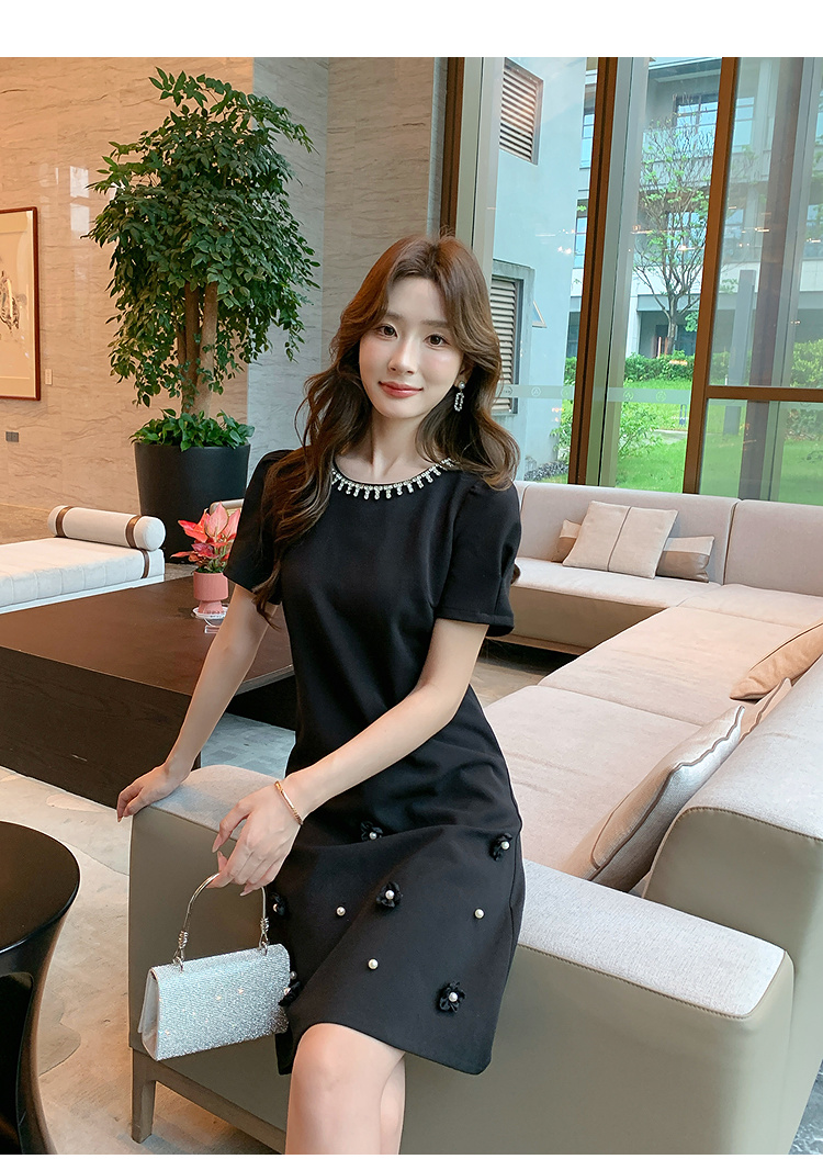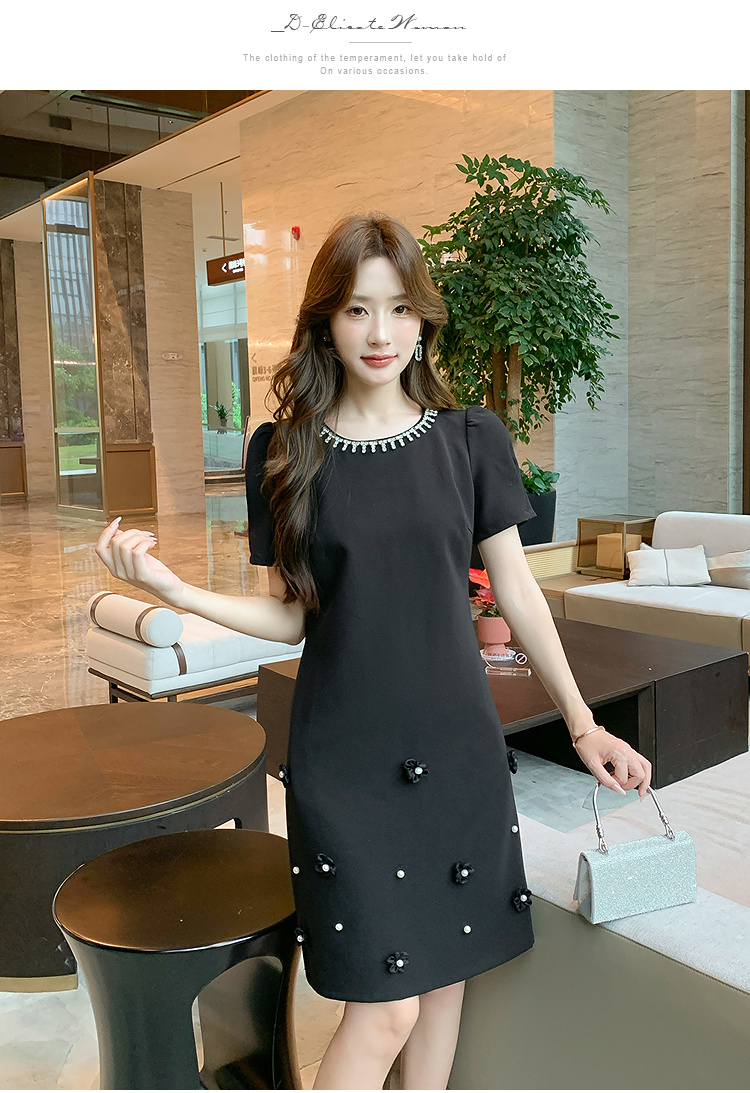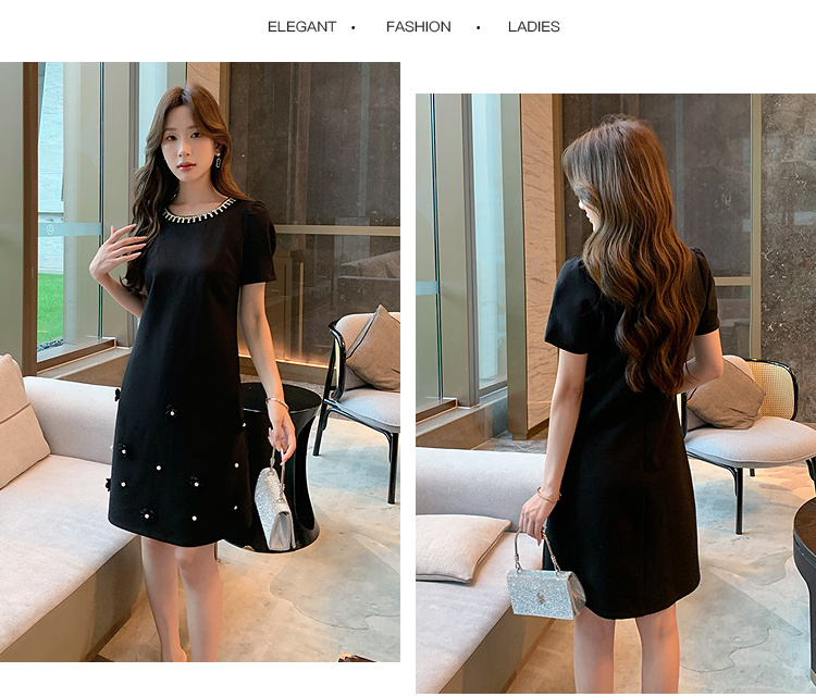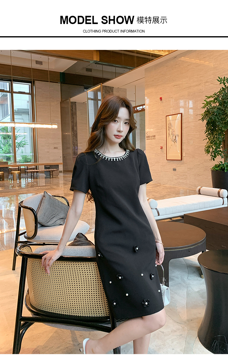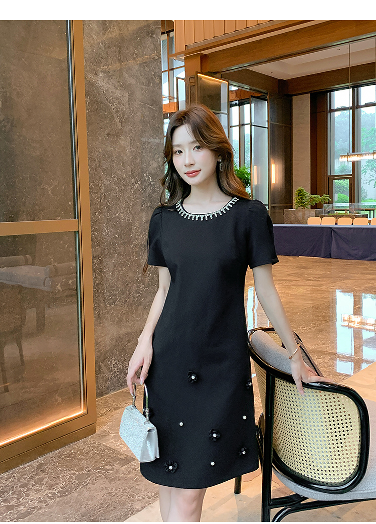 奢姿大码女装2025夏季减龄钉珠钻饰设计时尚连衣裙胖妹妹休闲裙子9952822088