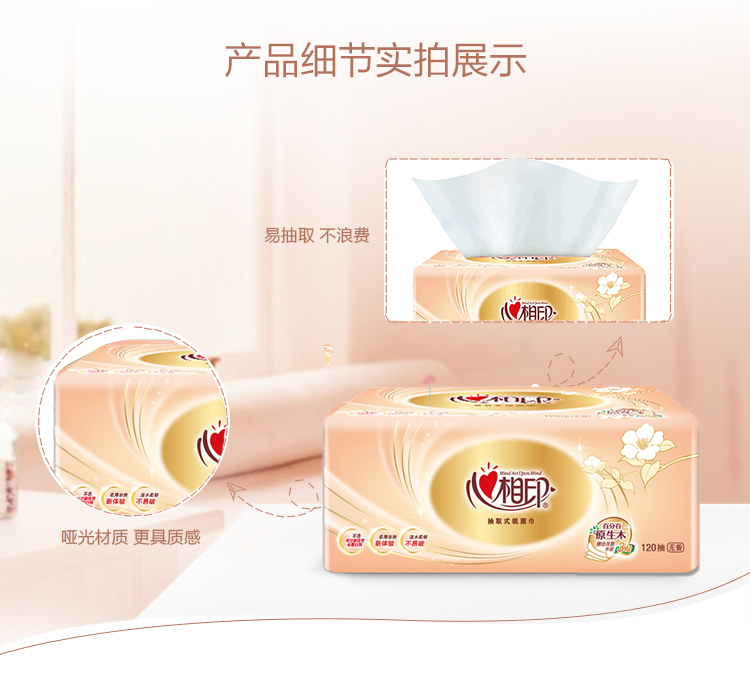 【心相印专区】DT24200经典系列120抽三层塑装纸面巾4包*20提(120抽/包)