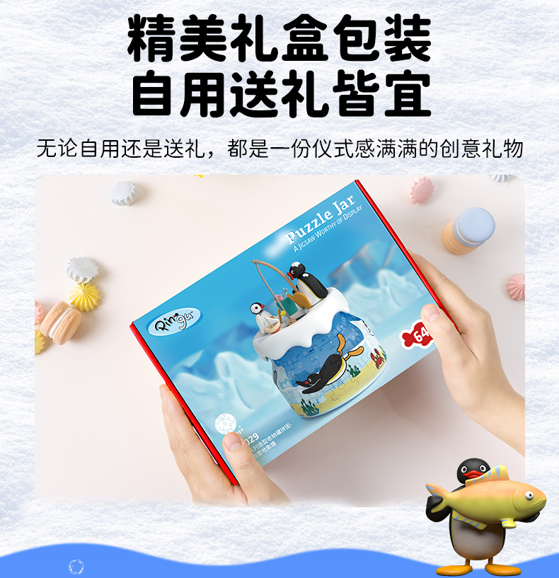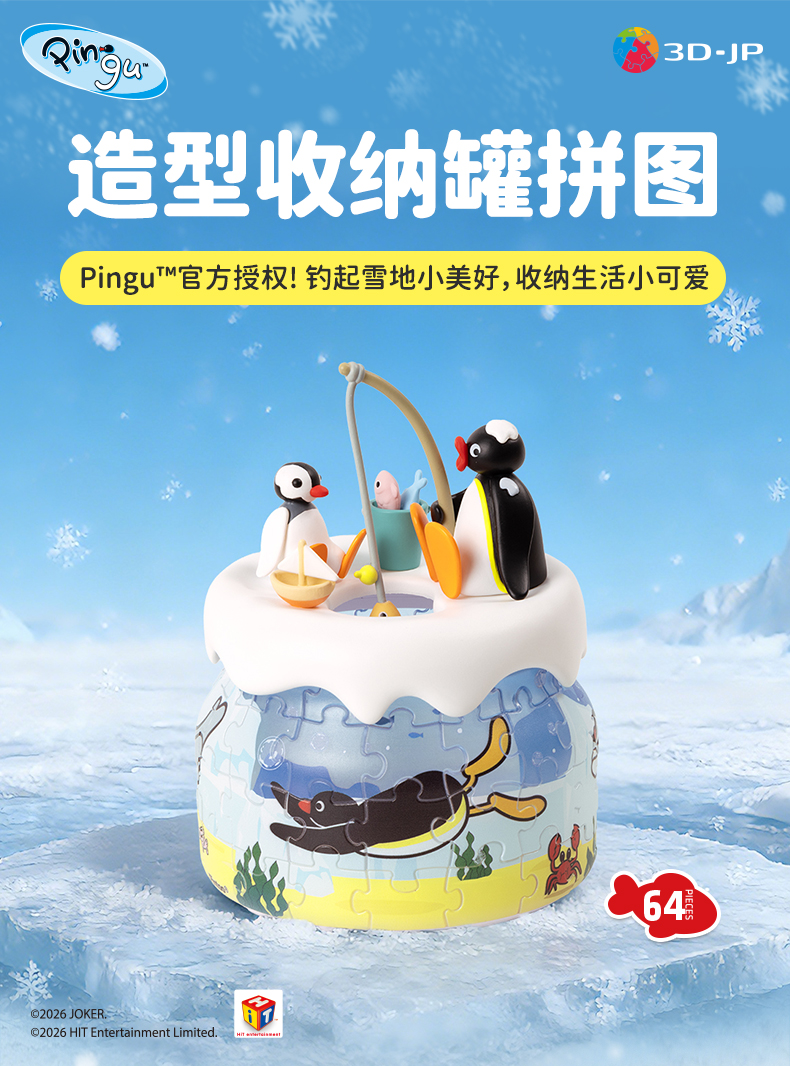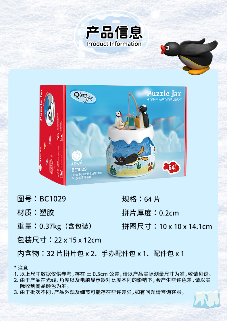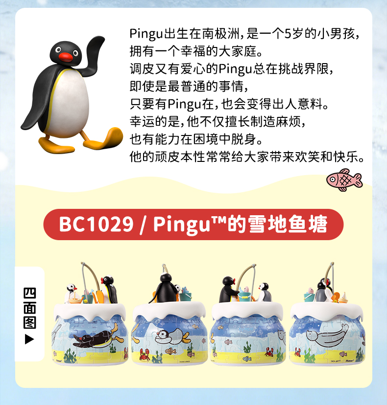 64片 BC1029 Pingu系列造型收纳罐拼图 Pingu的雪地鱼塘