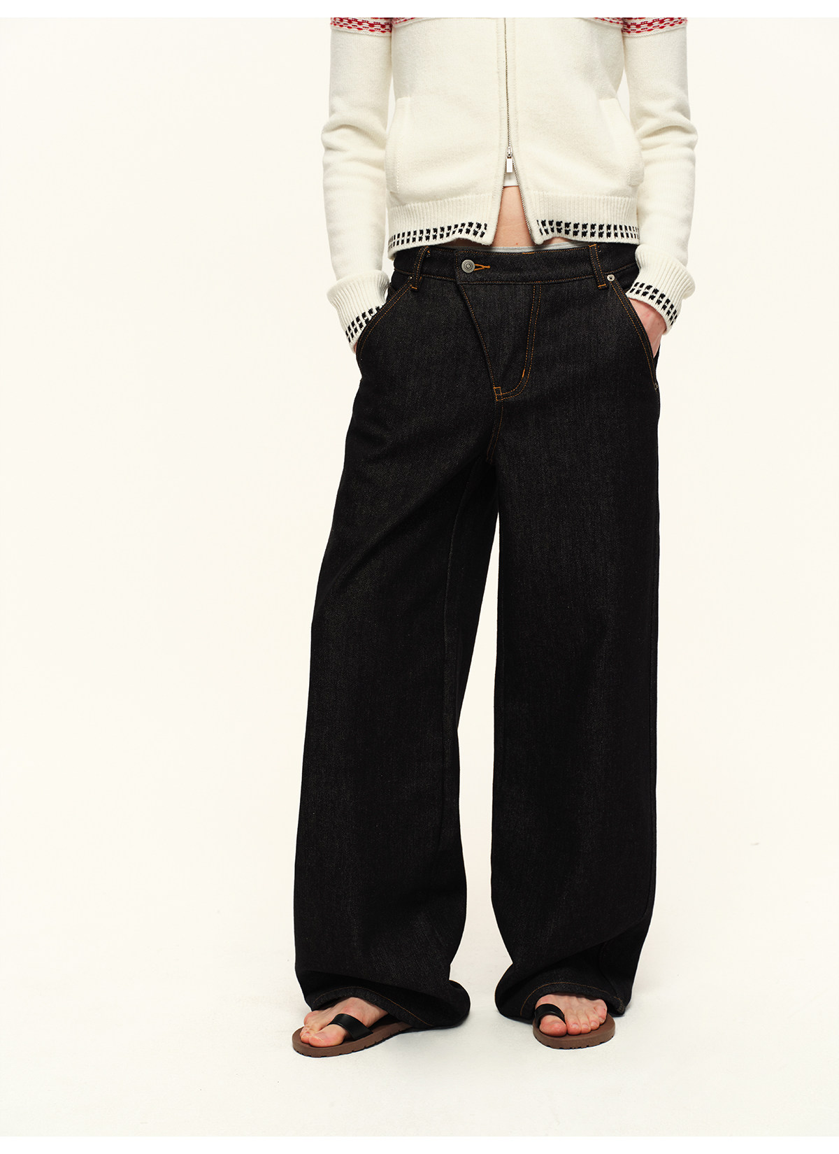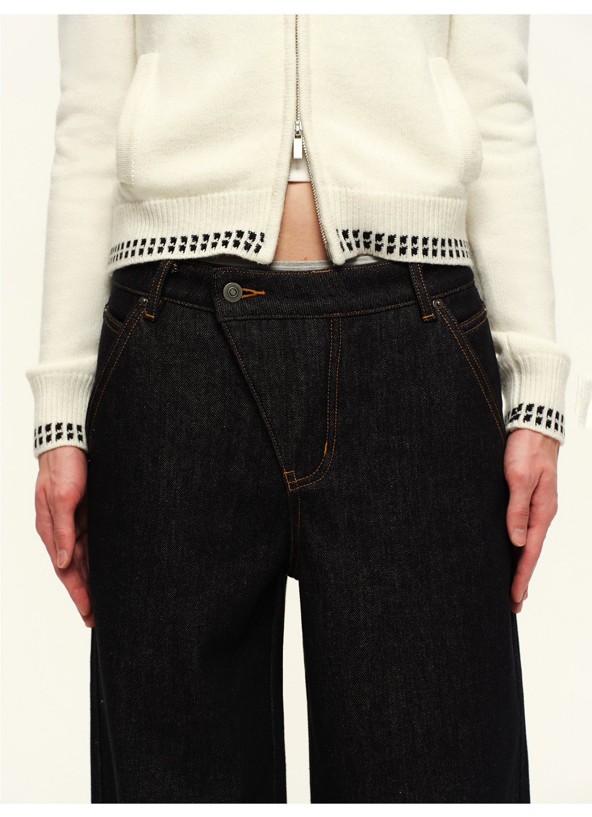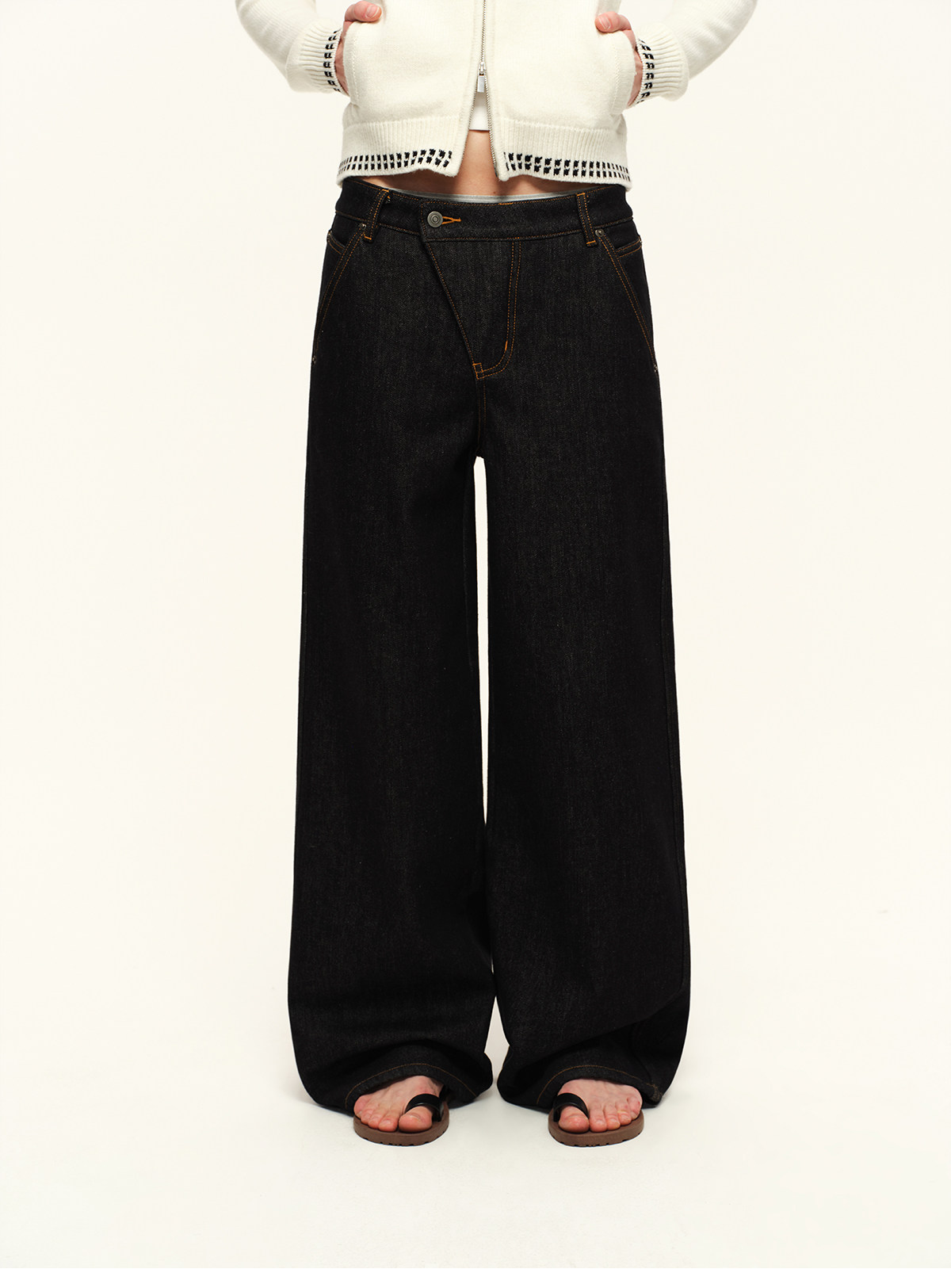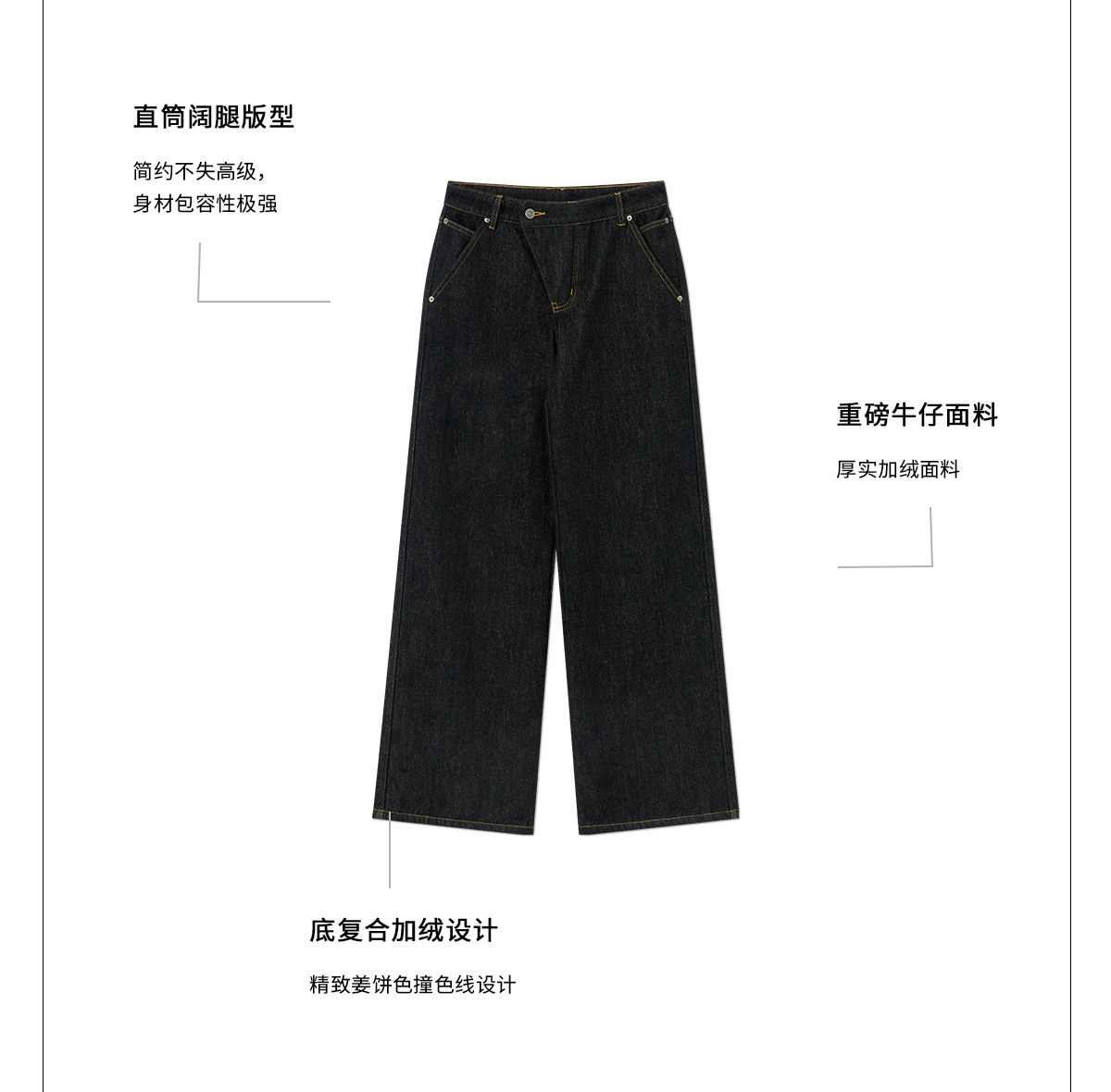 出逃赤岗西/25AWN147/复古原牛色重磅加绒斜门襟牛仔裤