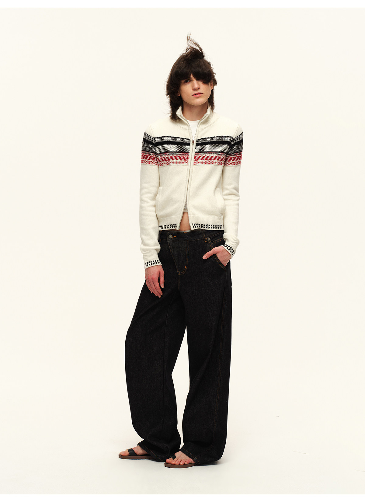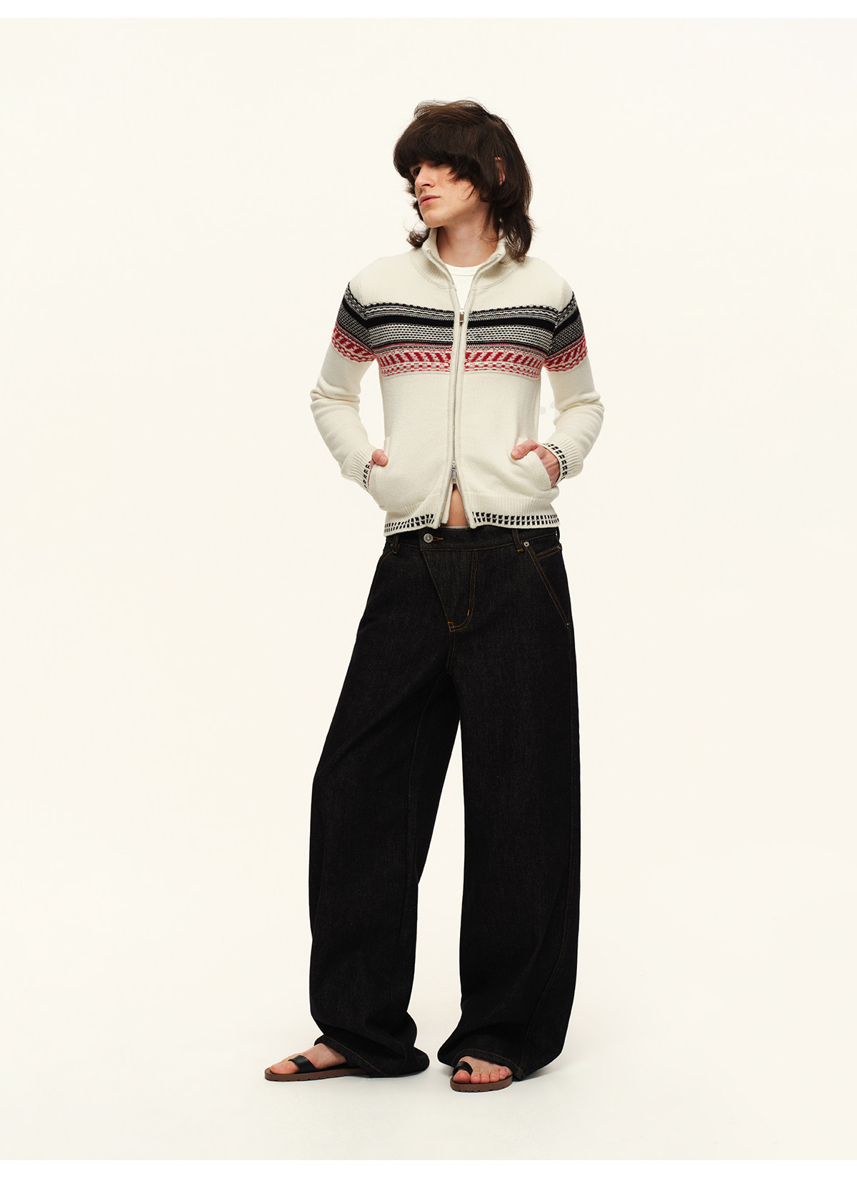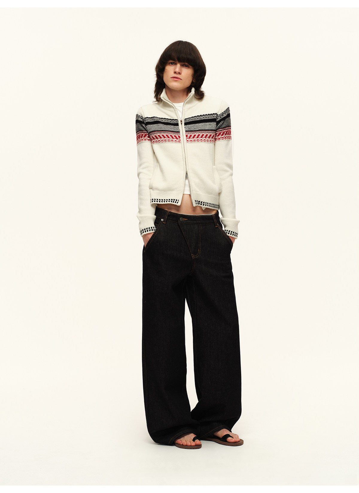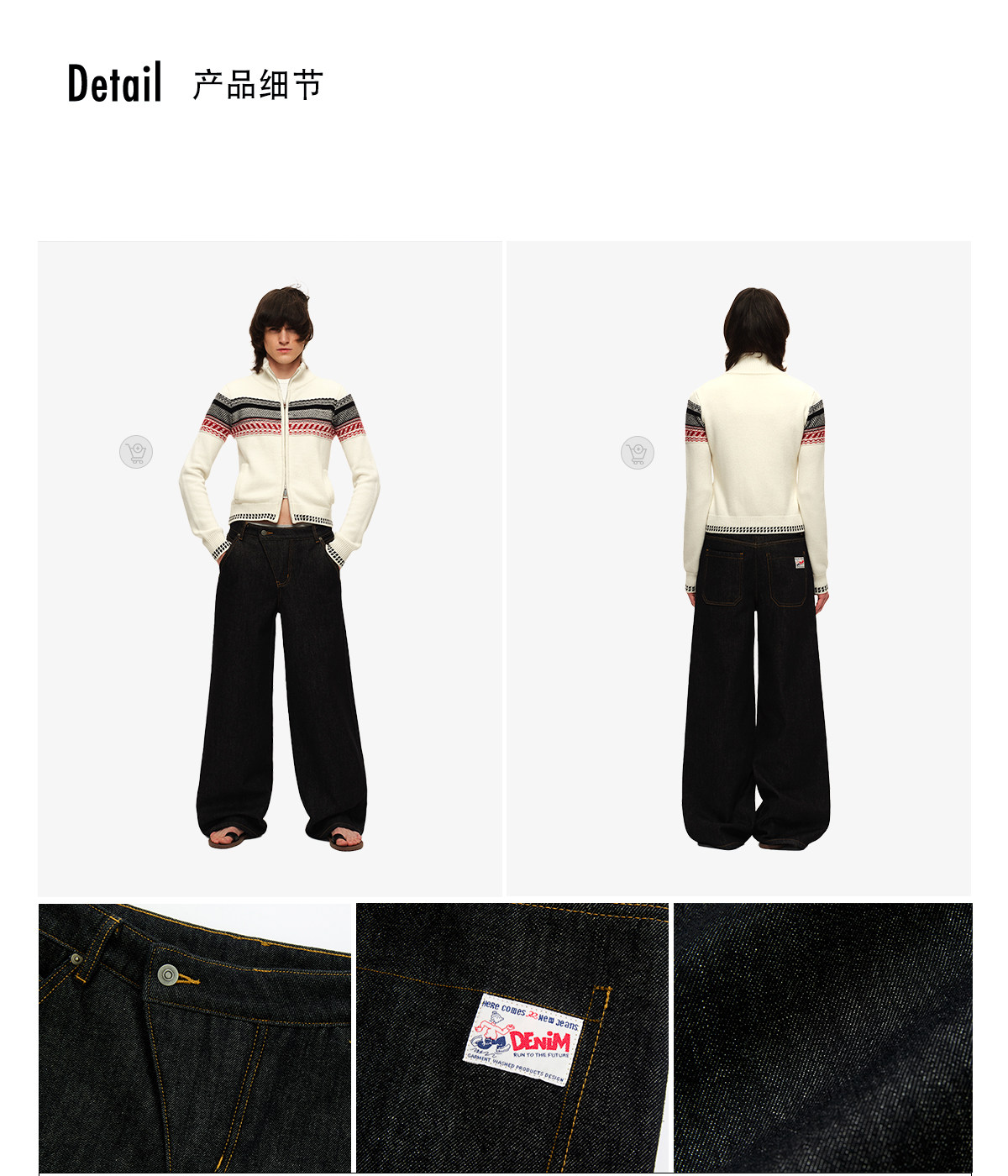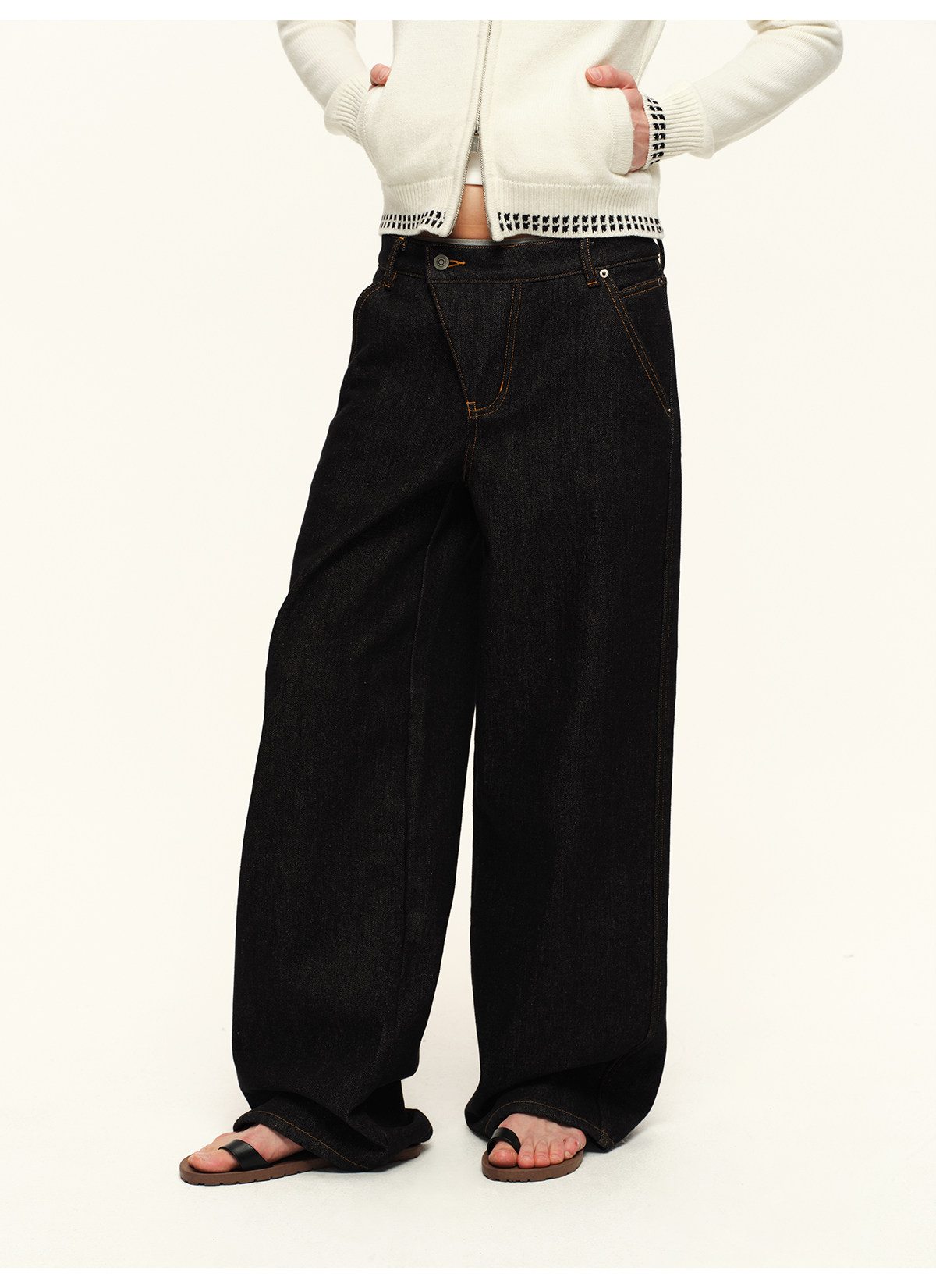 出逃赤岗西/25AWN147/复古原牛色重磅加绒斜门襟牛仔裤