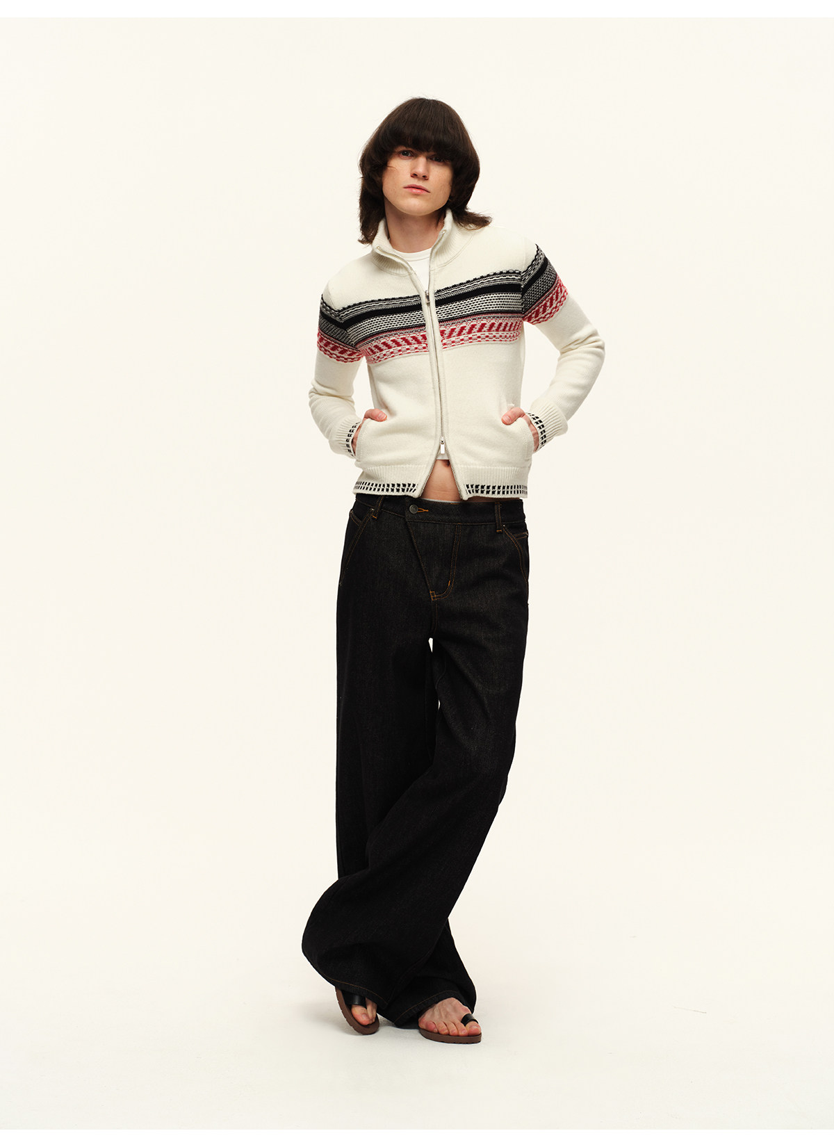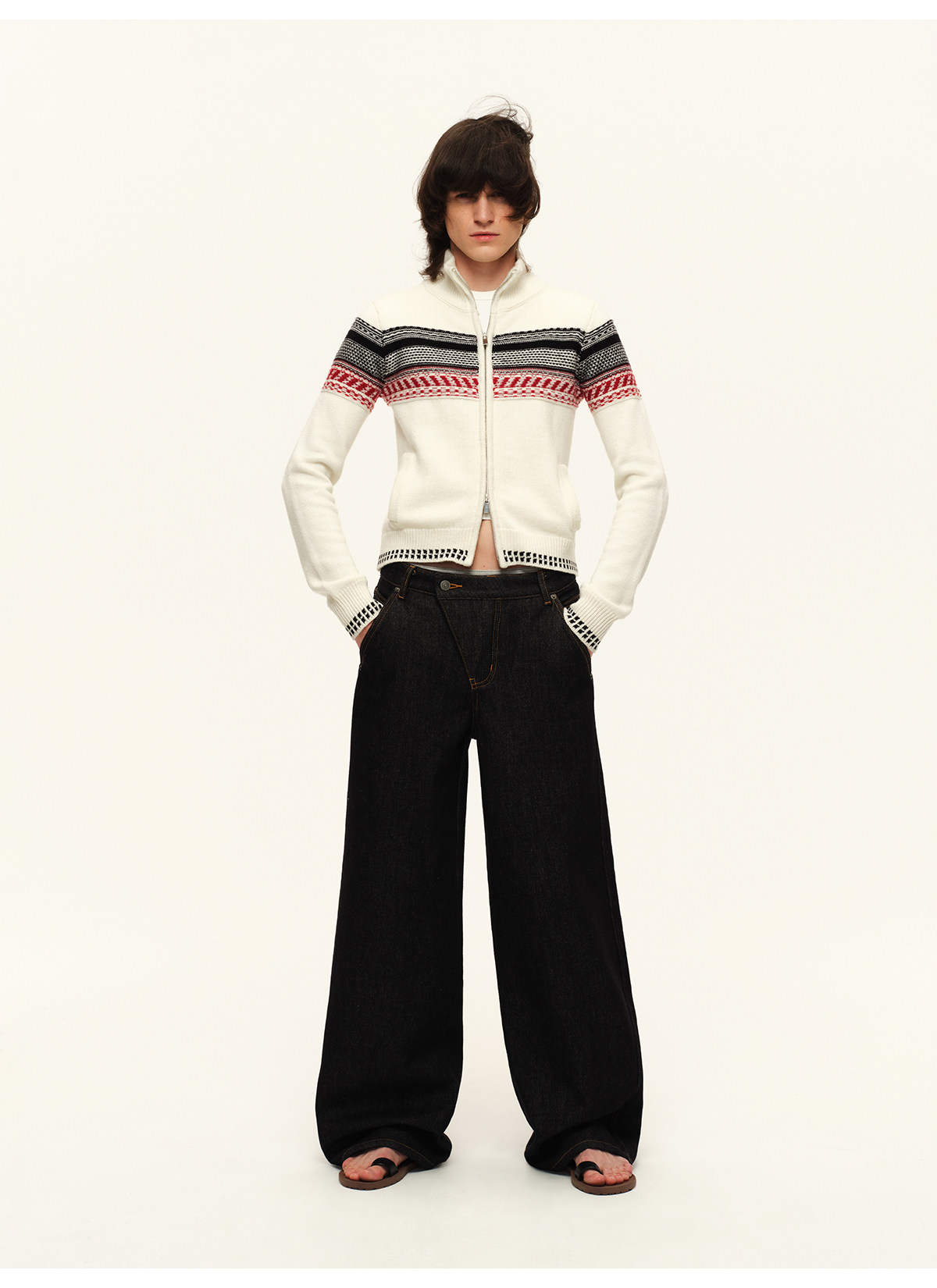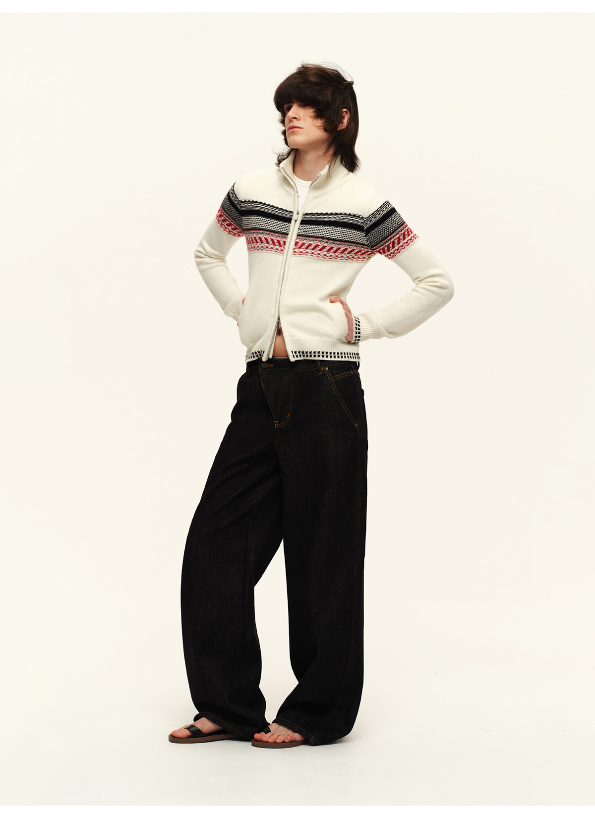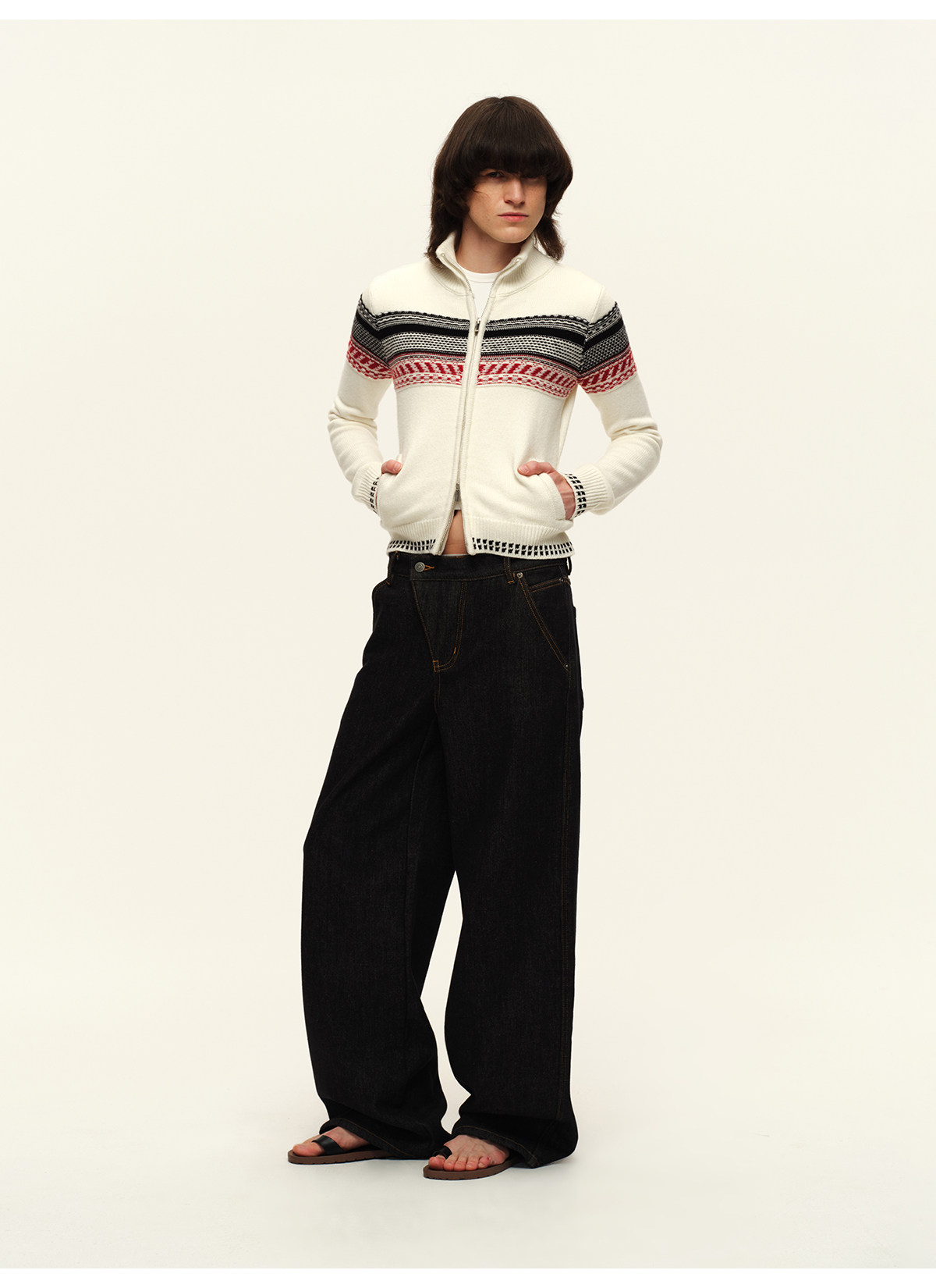 出逃赤岗西/25AWN147/复古原牛色重磅加绒斜门襟牛仔裤