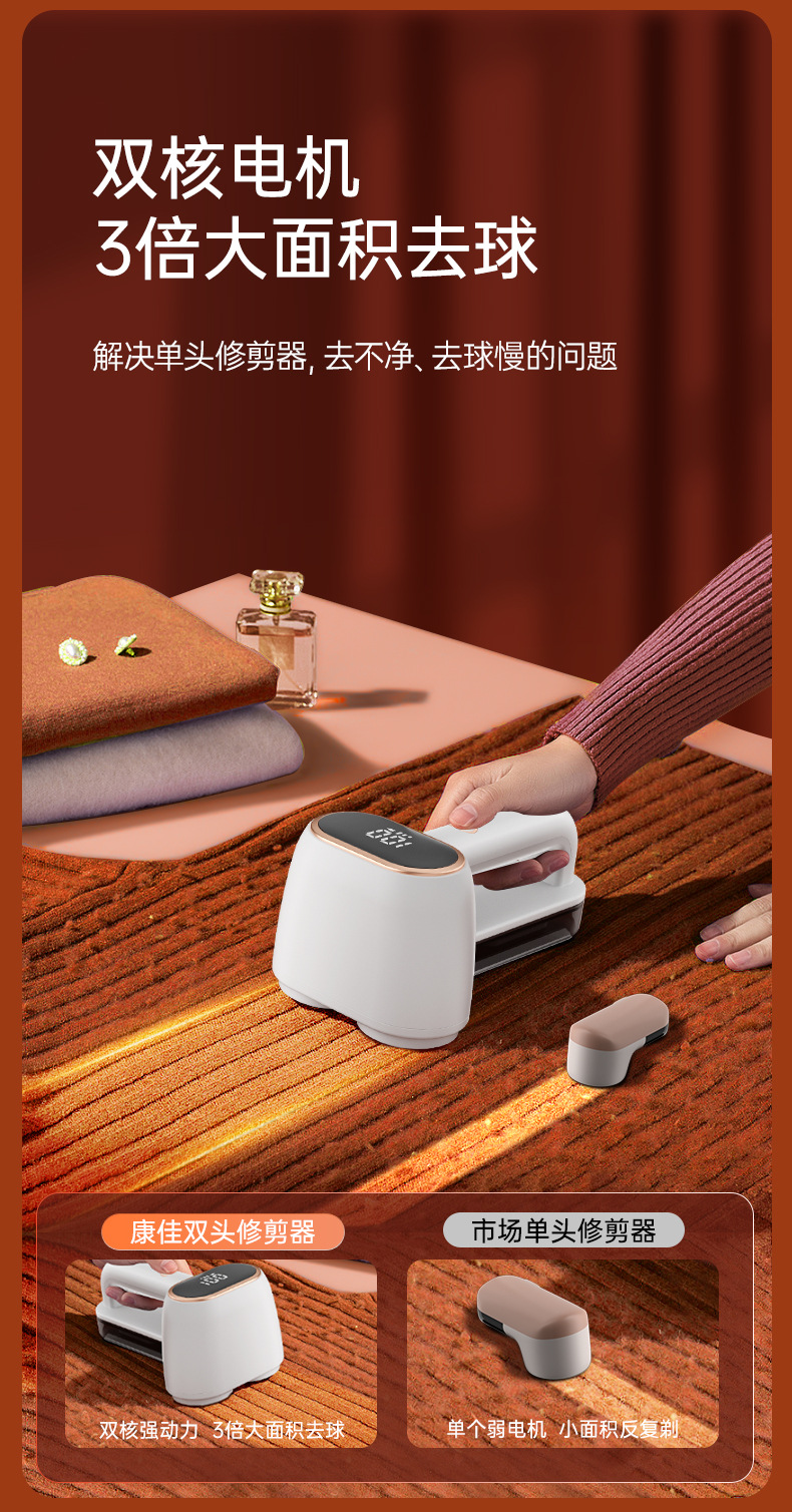 【一剃如新!康佳双头毛球修剪器】剃毛器衣服去球器剃毛机刮毛修剪吸毛电动,多重维度降噪低音设计,给你舒适的除球体验。