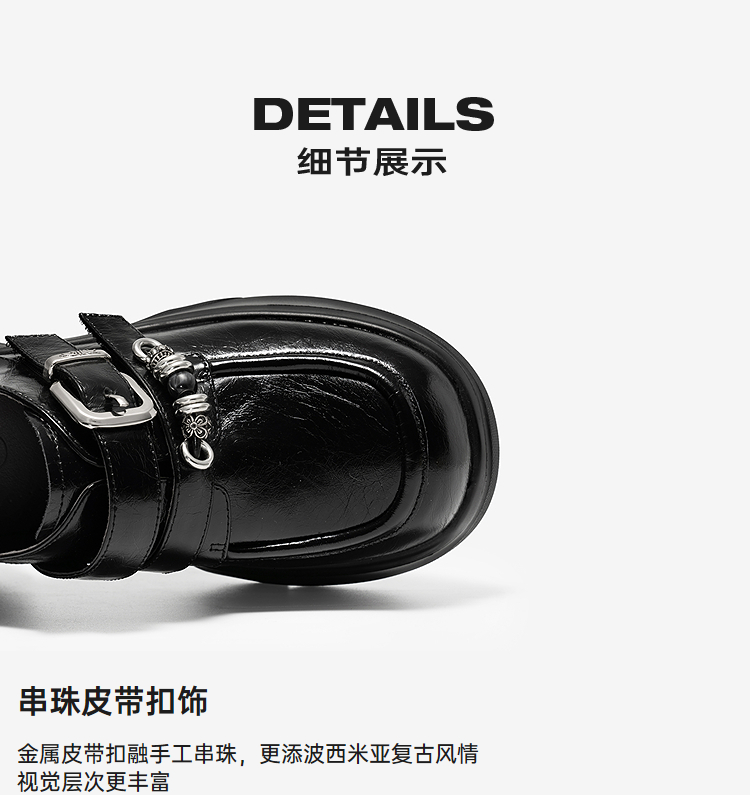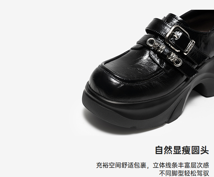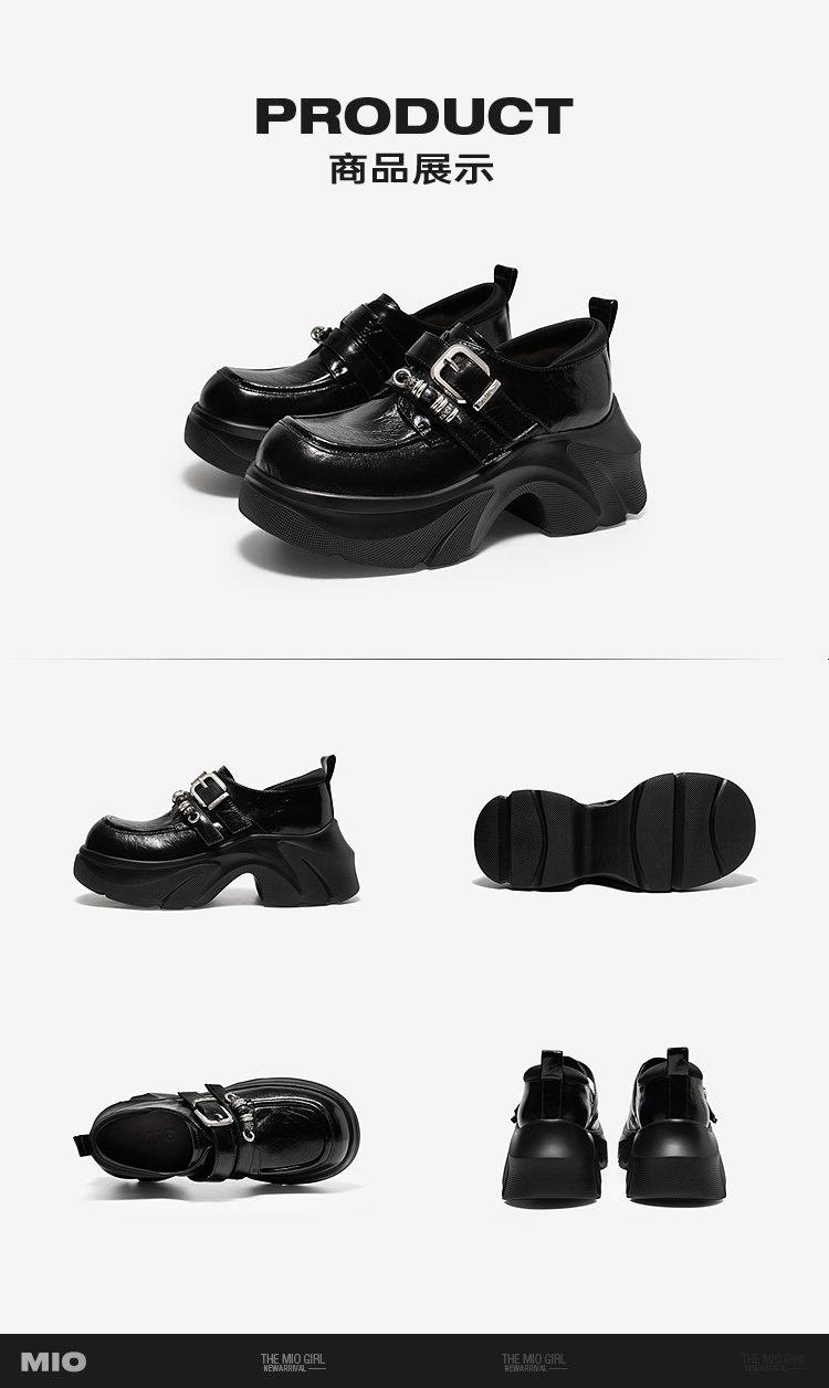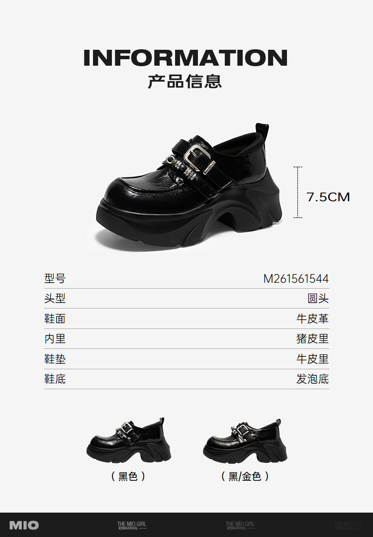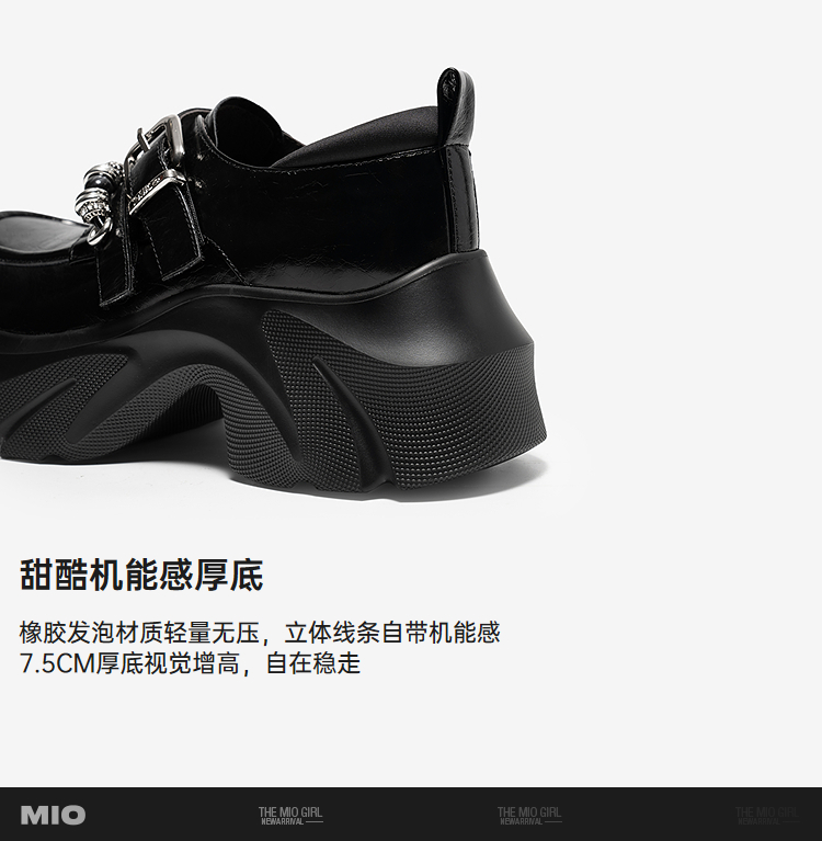 MIO米奥甜酷小皮鞋2026春季新款厚底增高黑色复古通勤运动乐福鞋M261561544