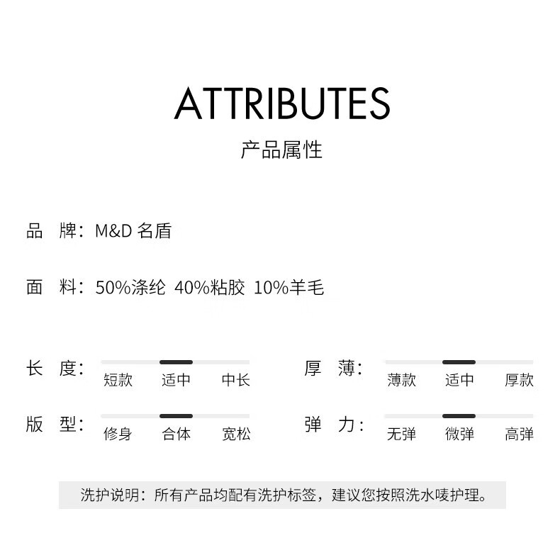 | 材质: 涤纶(聚酯纤维)50%,粘纤(粘胶纤维)40%,羊毛10% |