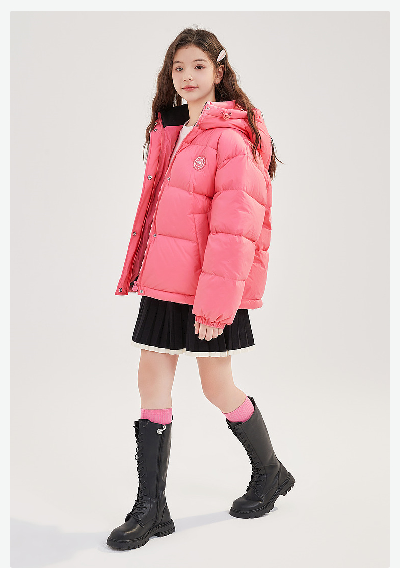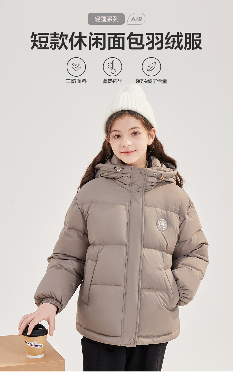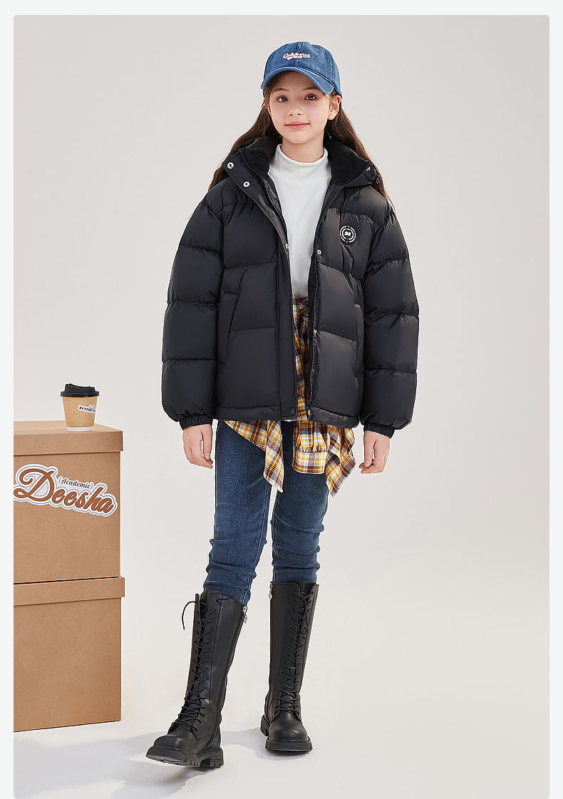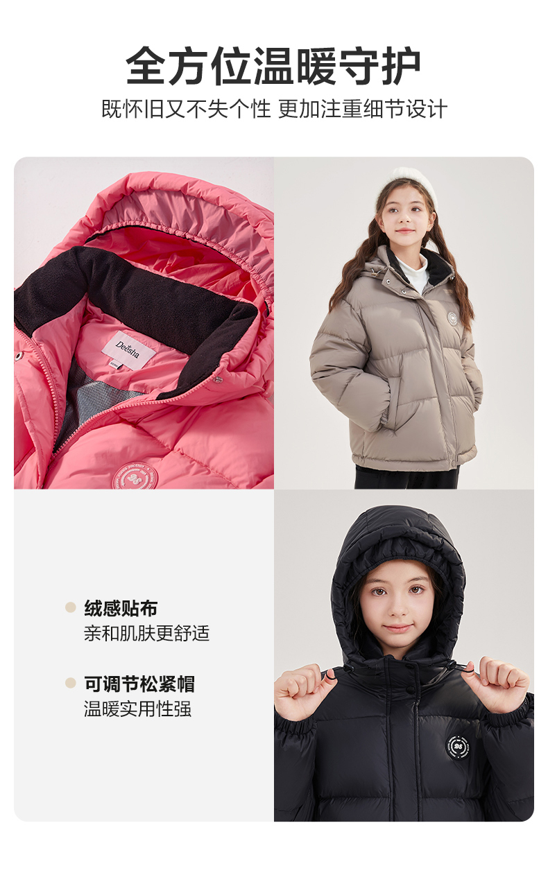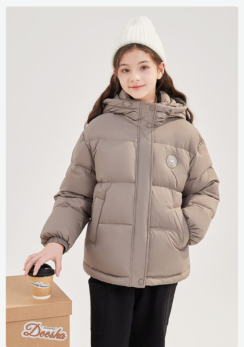 笛莎Deesha青少年女童羽绒服2024冬季新款复古学院风短款休闲面包羽绒服
