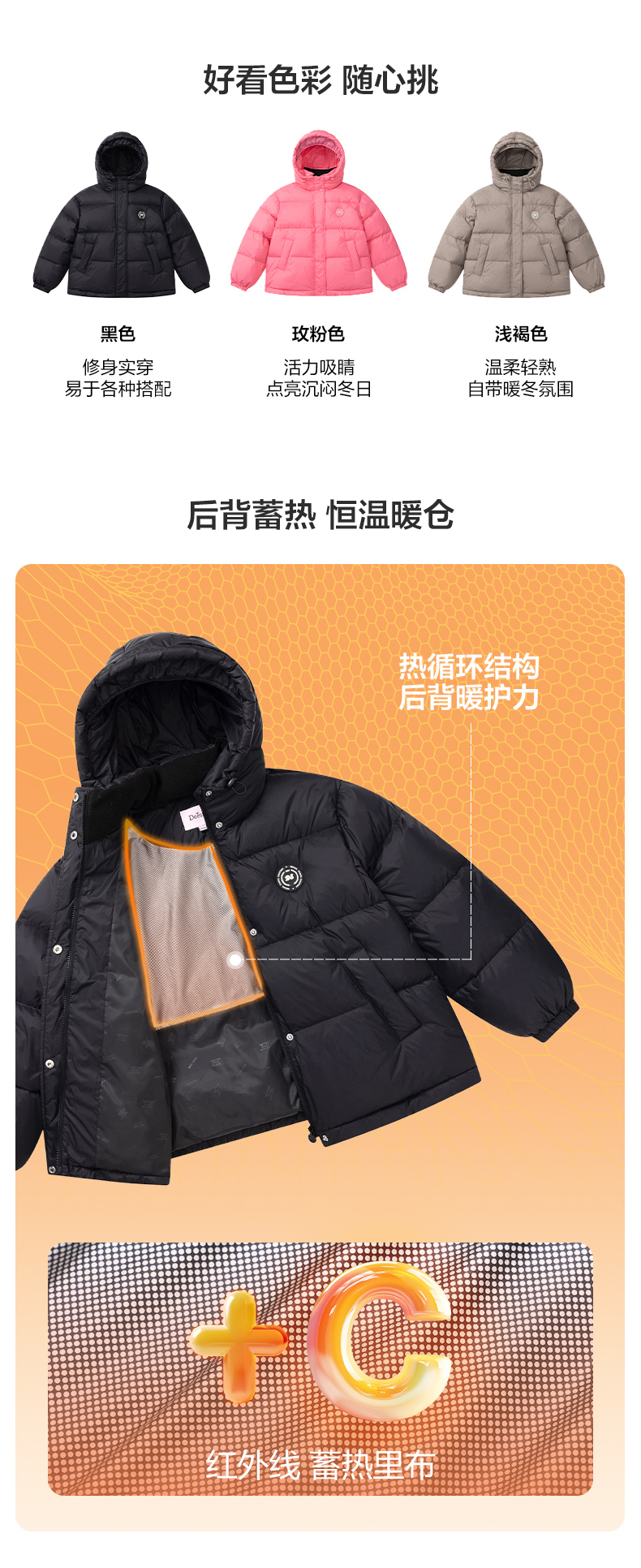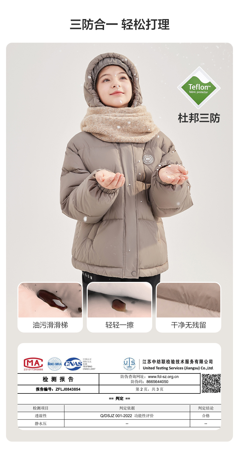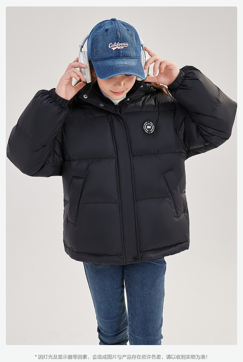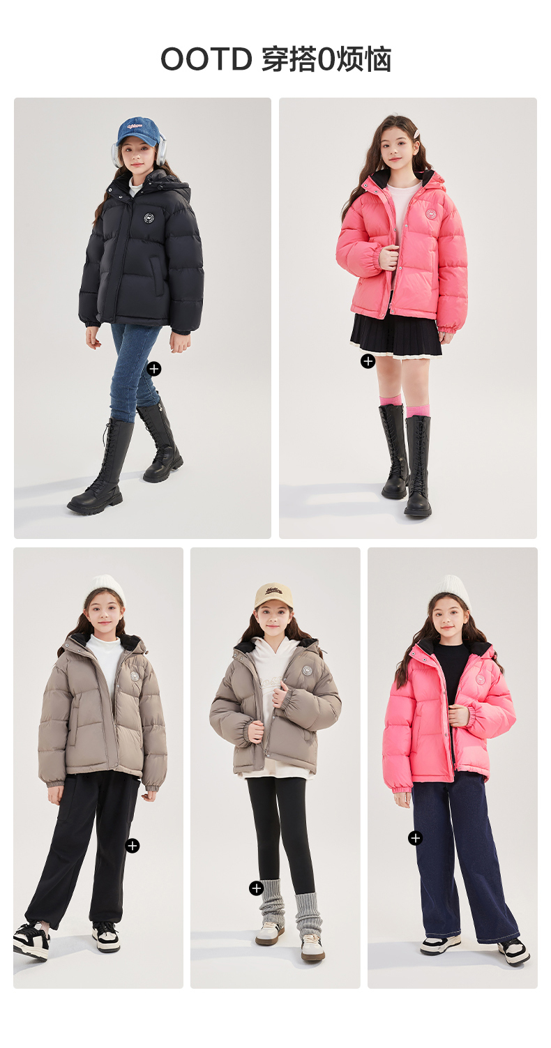 笛莎Deesha青少年女童羽绒服2024冬季新款复古学院风短款休闲面包羽绒服