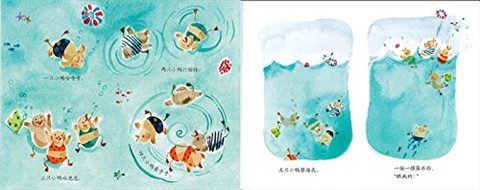 一只小鸭咕噜噜,两只小鸭打转转,三只小鸭吐泡泡,四只小鸭晕乎乎……
