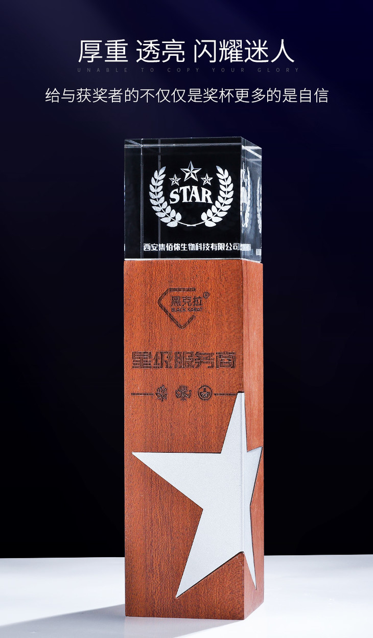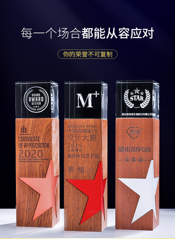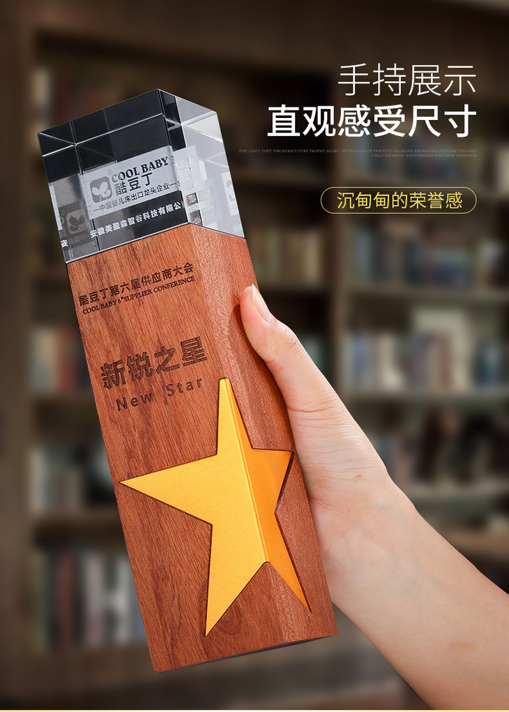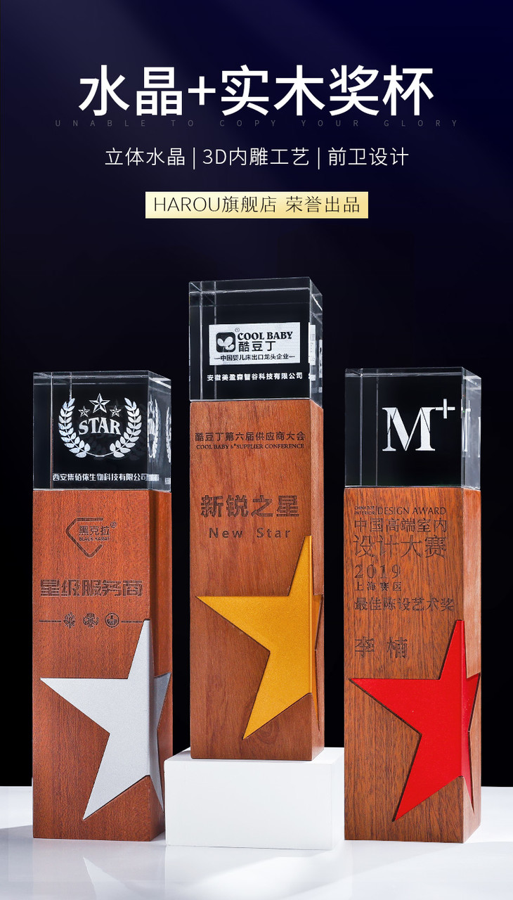 创意金属五角星实木水晶3D激光内雕奖杯定制定做奖牌荣誉颁奖刻字
