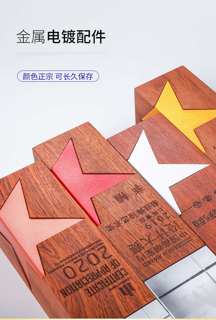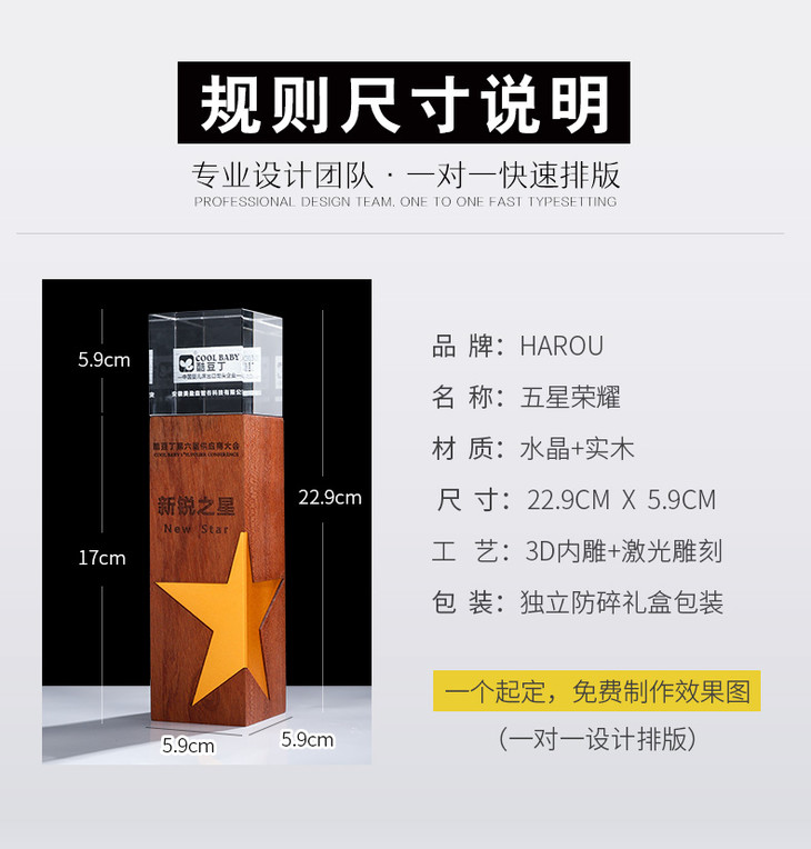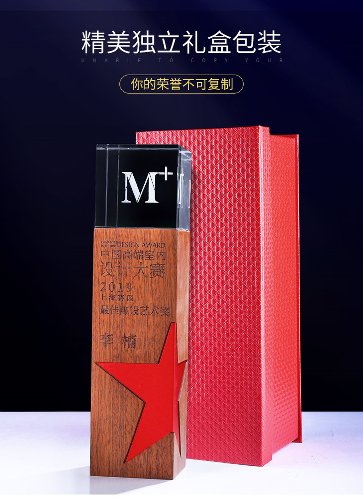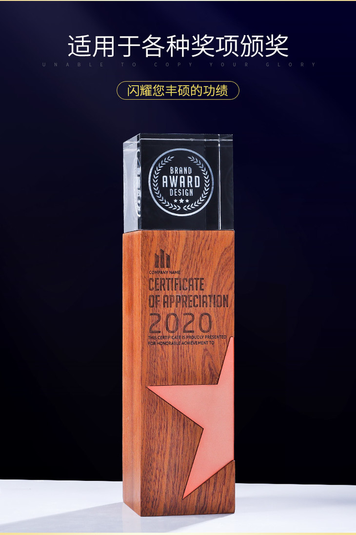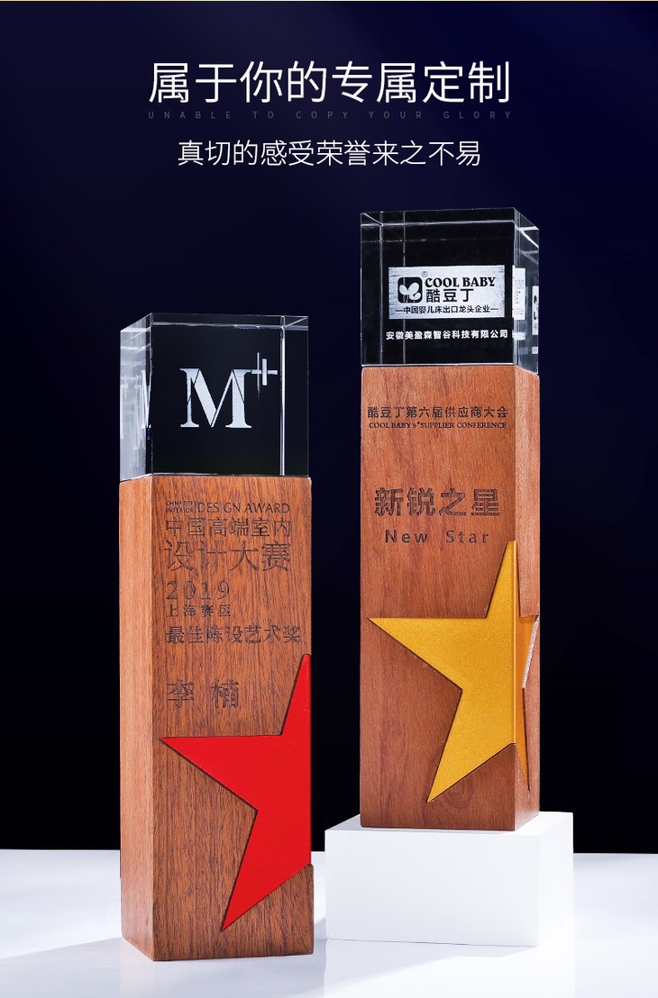 创意金属五角星实木水晶3D激光内雕奖杯定制定做奖牌荣誉颁奖刻字