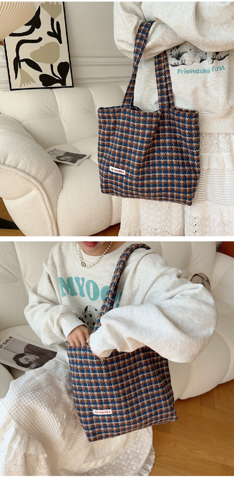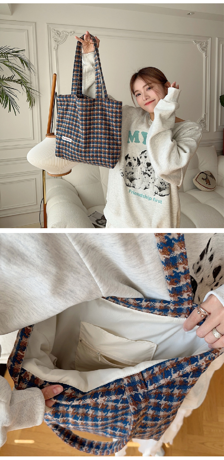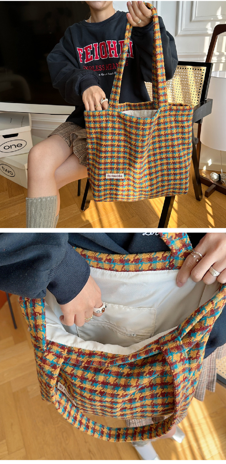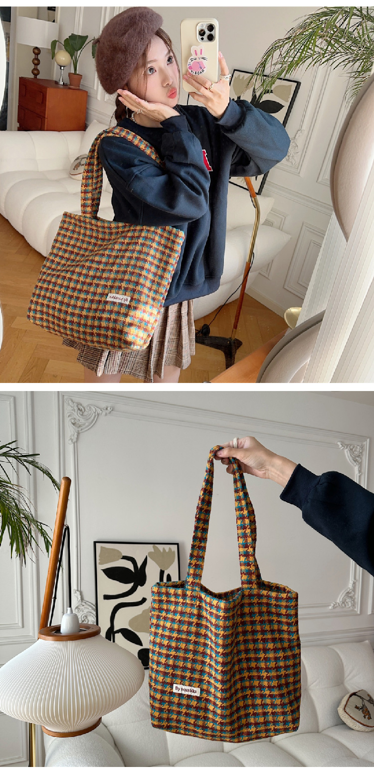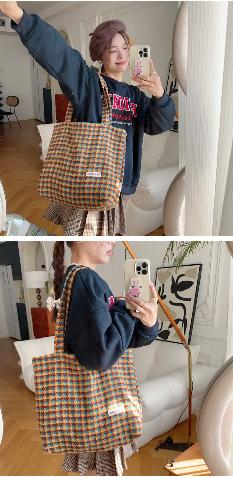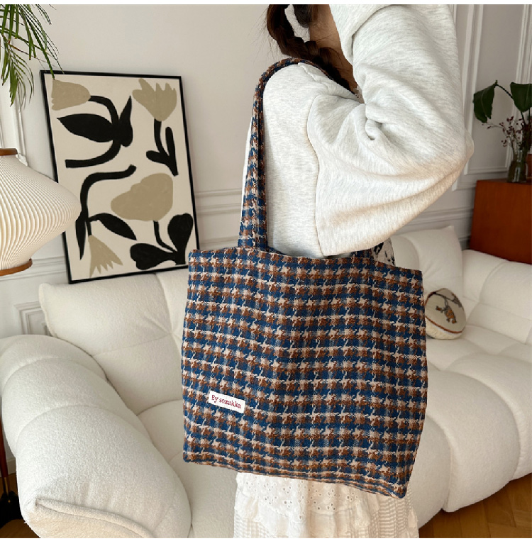 【千鸟格包包】韩风ins帆布包女毛呢小千鸟格单肩包 大容量休闲逛街托特包