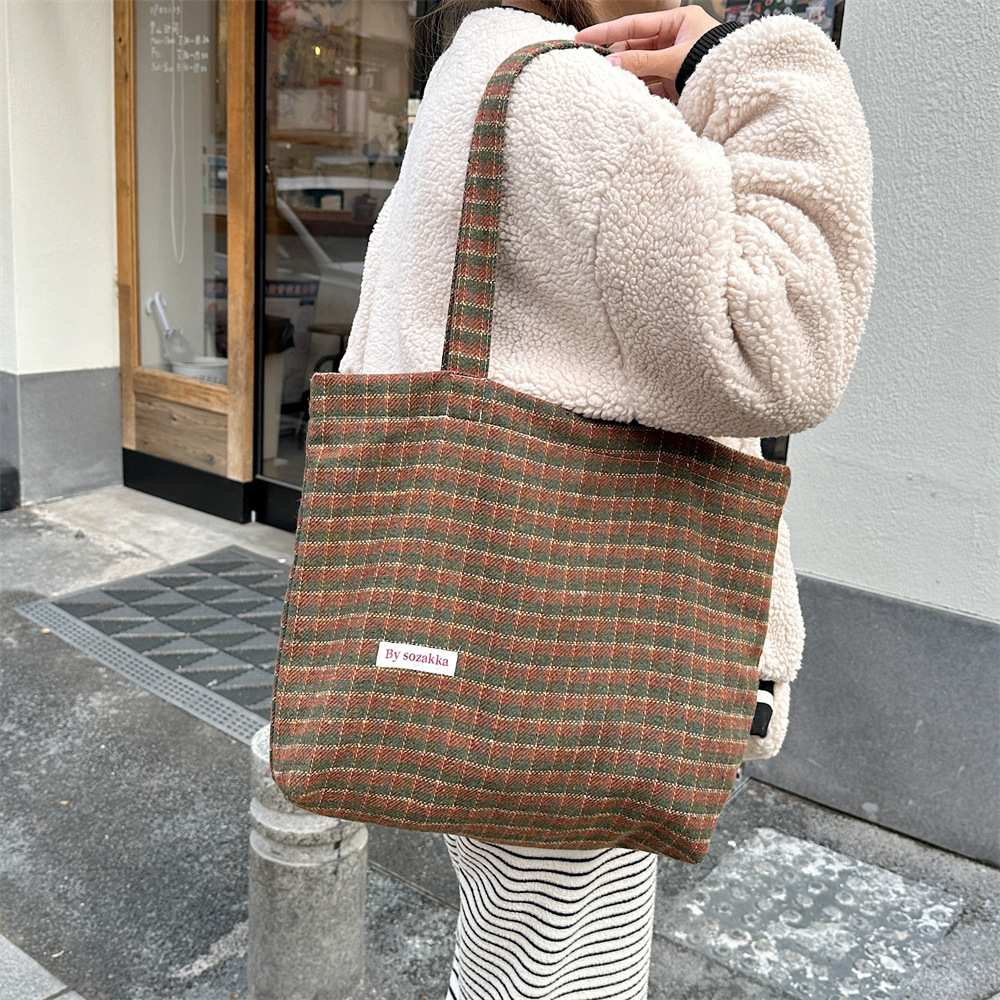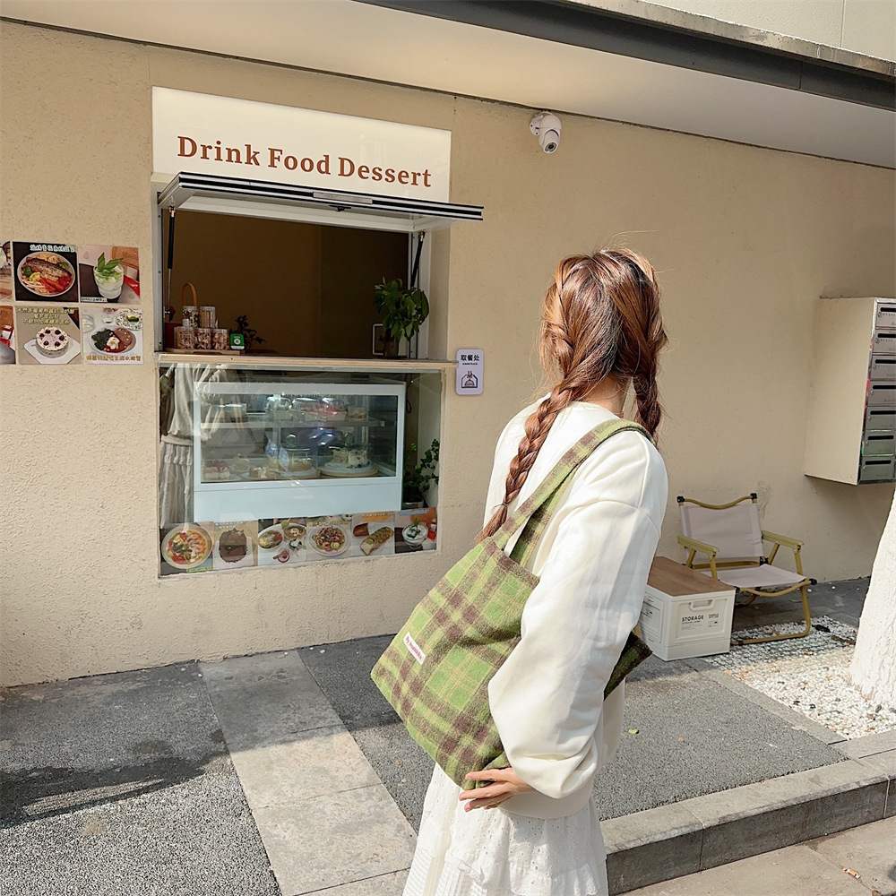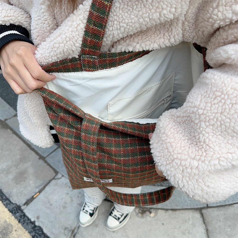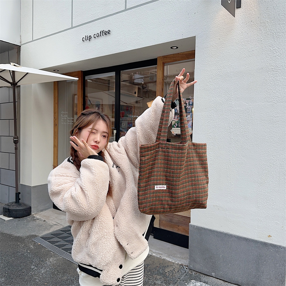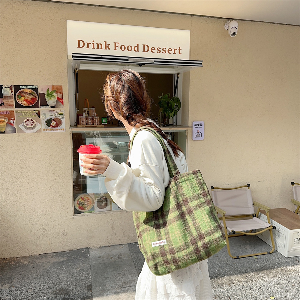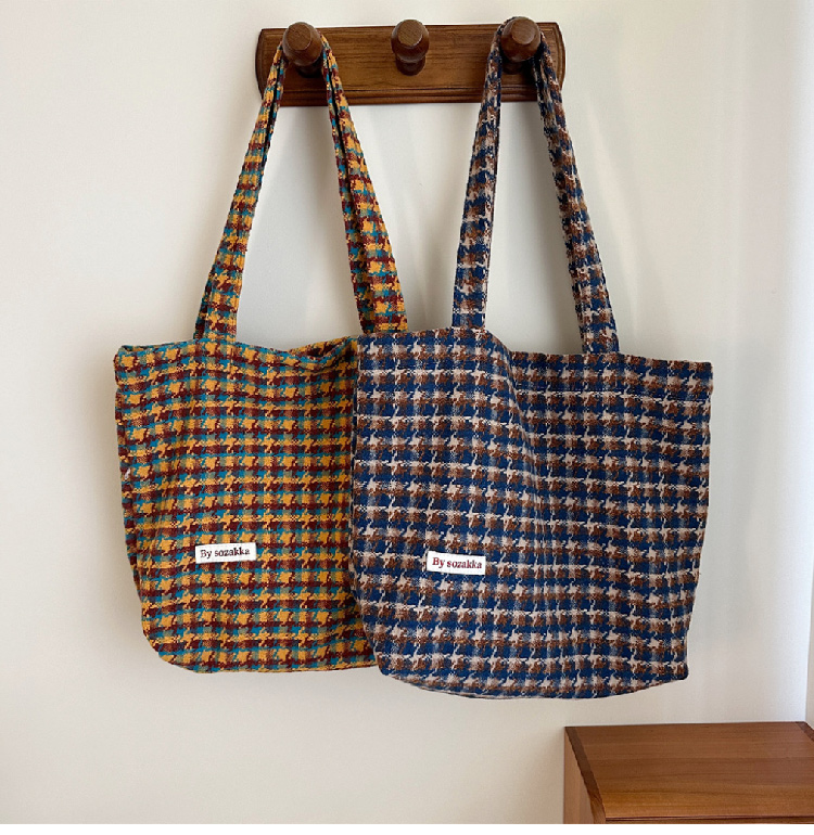 【千鸟格包包】韩风ins帆布包女毛呢小千鸟格单肩包 大容量休闲逛街托特包