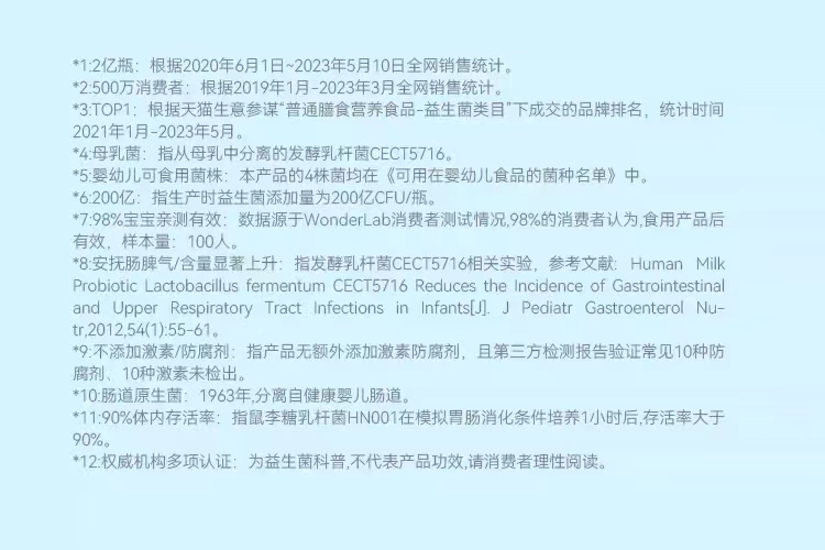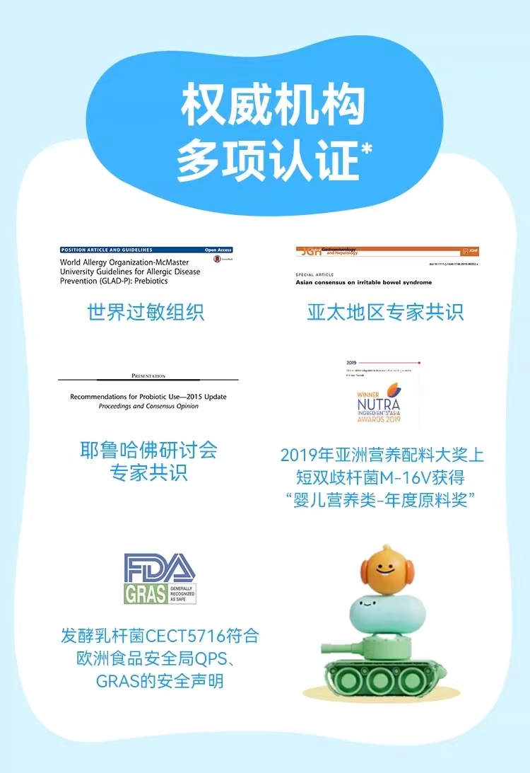 【注意事项】:若同时服用抗生素类药物,请至少间隔2小时,开启铝膜后请尽快食用。